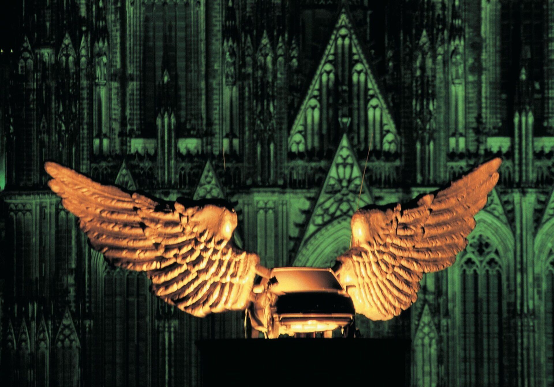 The artist achieves this not merely through depiction—the wall also reveals images that bear witness to the history of Düsseldorf as a laboratory par excellence of art experiments since its devastation in the war—but also by investing it some with features that contravene the conventional function of a wall, and still others that implicitly allow it to take flight.