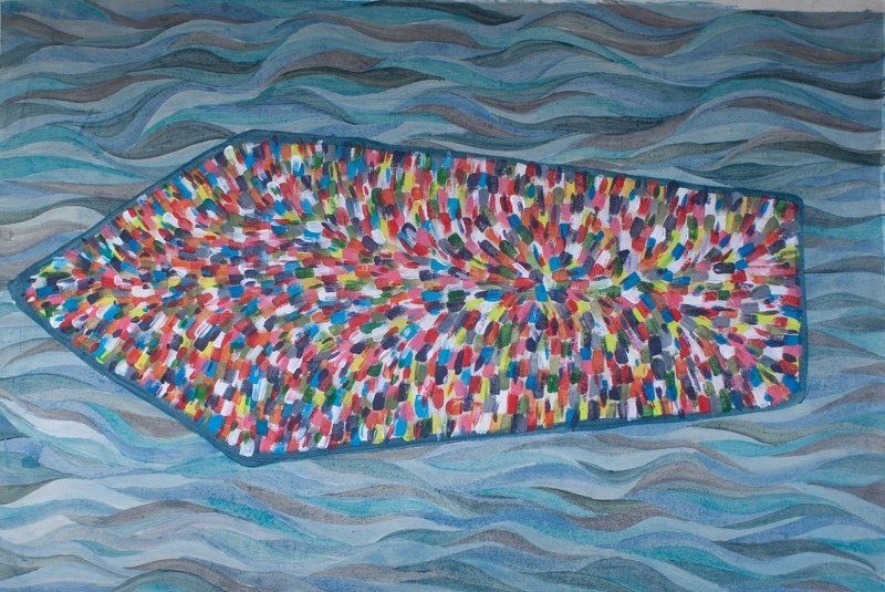 Arafa and The Dirars - A boat in the Mediterranean 2021 - acrylic and watercolours on calico