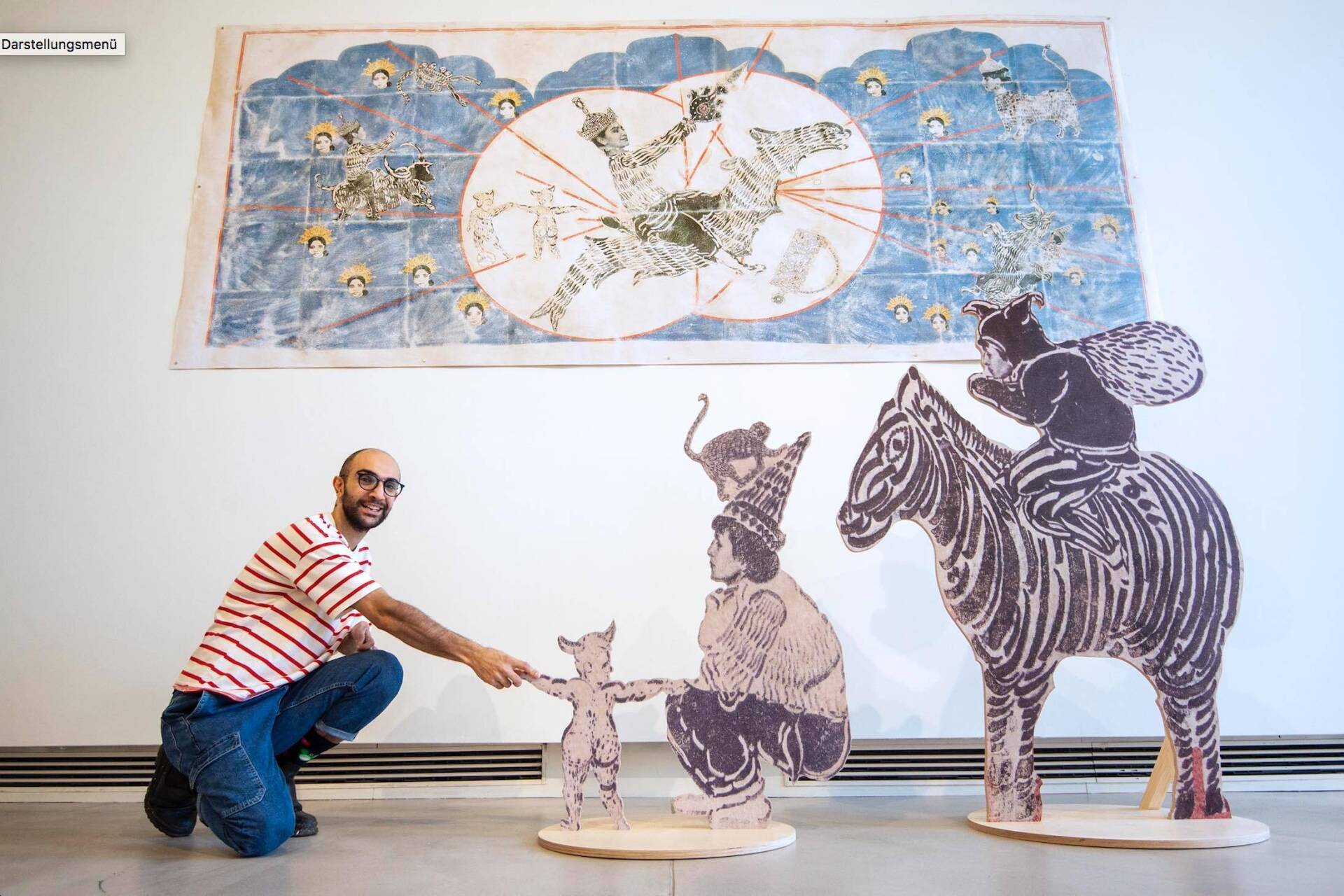 Mohammad Barrangi in January 2022 at his exhibition Anything Is Possible at Edinburgh Printmakers