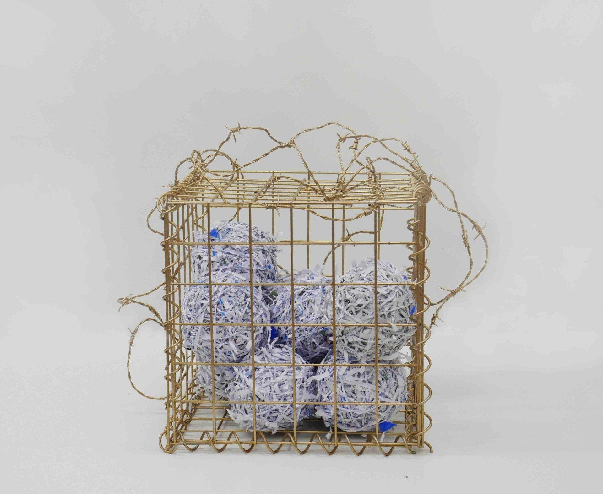 The Redistribution of Memory. 2021. Metal, Paper fibber, barbed wire