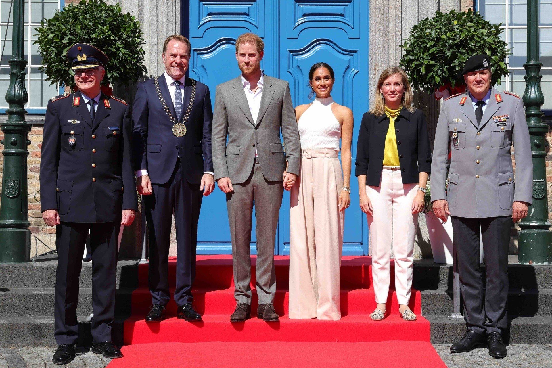 From left: General Marstaller, Lod Mayor Keller, Prince Harry & Duchess Meghan, Siemtje Möller, Parliamentary State Secretary in the Ministry of Defence, Lieutenant General Markus Laubenthal ©IG23