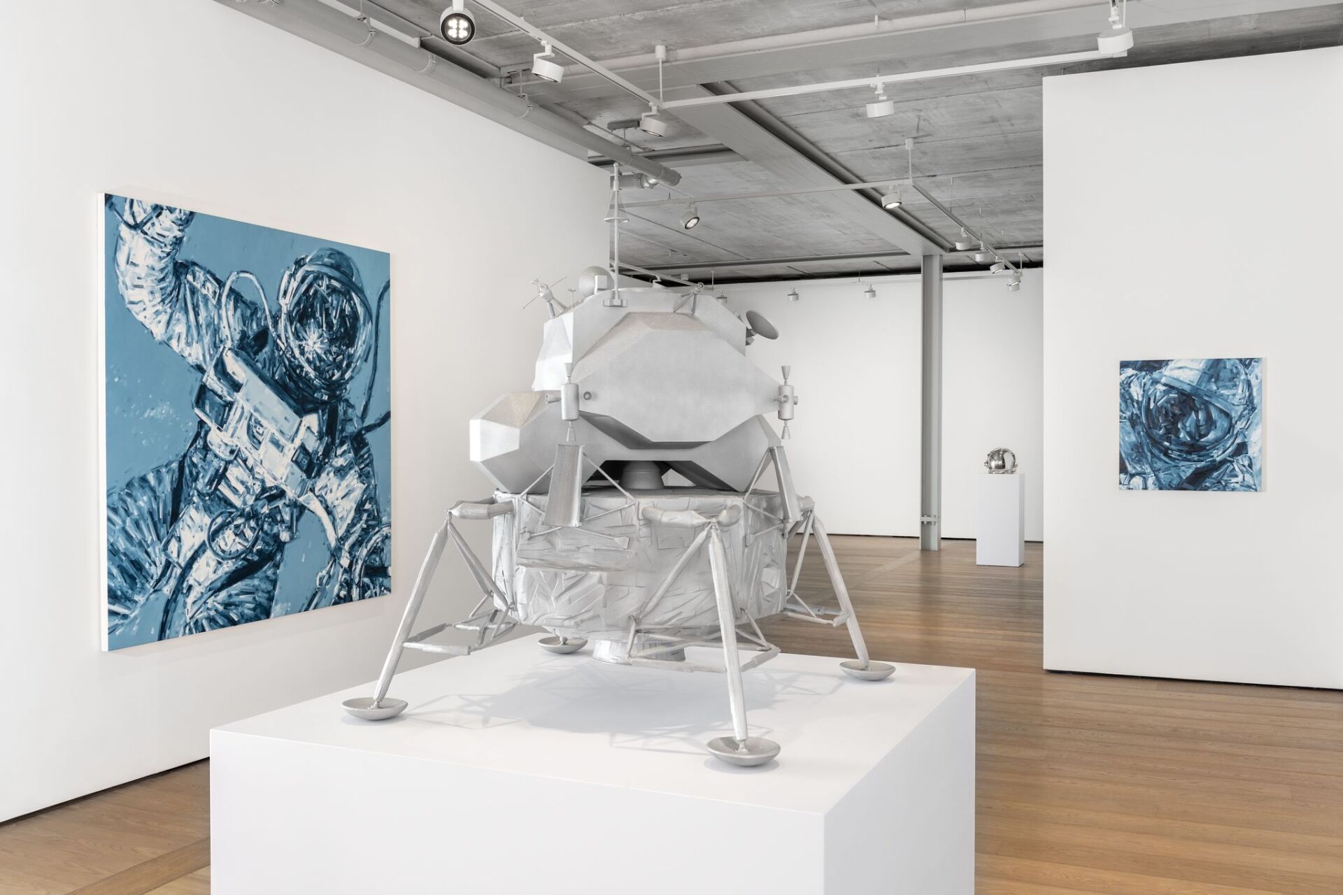 Diese Ausstellung ist eine kurze "Zeitleiste" der drei Raumfahrtprogramme, die uns zum Mond gebracht haben: Mercury, Gemini und Apollo. Wenn man die Galerie betritt, sieht man drei riesige Raketenbilder des berühmten John-Glenn-Starts, der den ersten Amerikaner in die Umlaufbahn brachte. Damit war die Grundlage für das Projekt Gemini geschaffen, das in der Mitte der Galerie auf einem Gemälde eines schwebenden Astronauten zu sehen ist... der erste Weltraumspaziergang mit Ed White. Der letzte Raum der Galerie stellt den Höhepunkt der Mercury- und Gemini-Missionen dar: das Apollo-Programm. Die Arbeit mit Skulpturen war interessant und wichtig für die Installation, weil ich den Betrachter wirklich durch die Ausstellung führen und eine Erzählung schaffen konnte.
