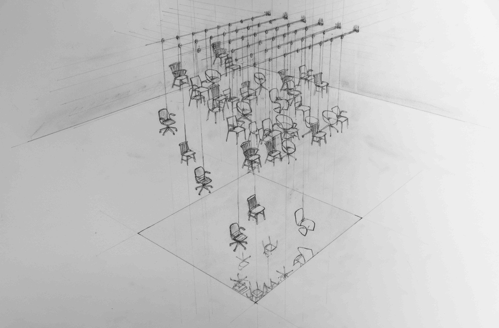The first part of the project will be in mid-September when I go to the museum to choose the chairs. In October we will start the artwork properly. In the run-up, we have done the big technical part of the work with all the drawings and planning. Next week I'll travel to Cologne to inspect the suspension devices and the winches for pulling up the chairs.