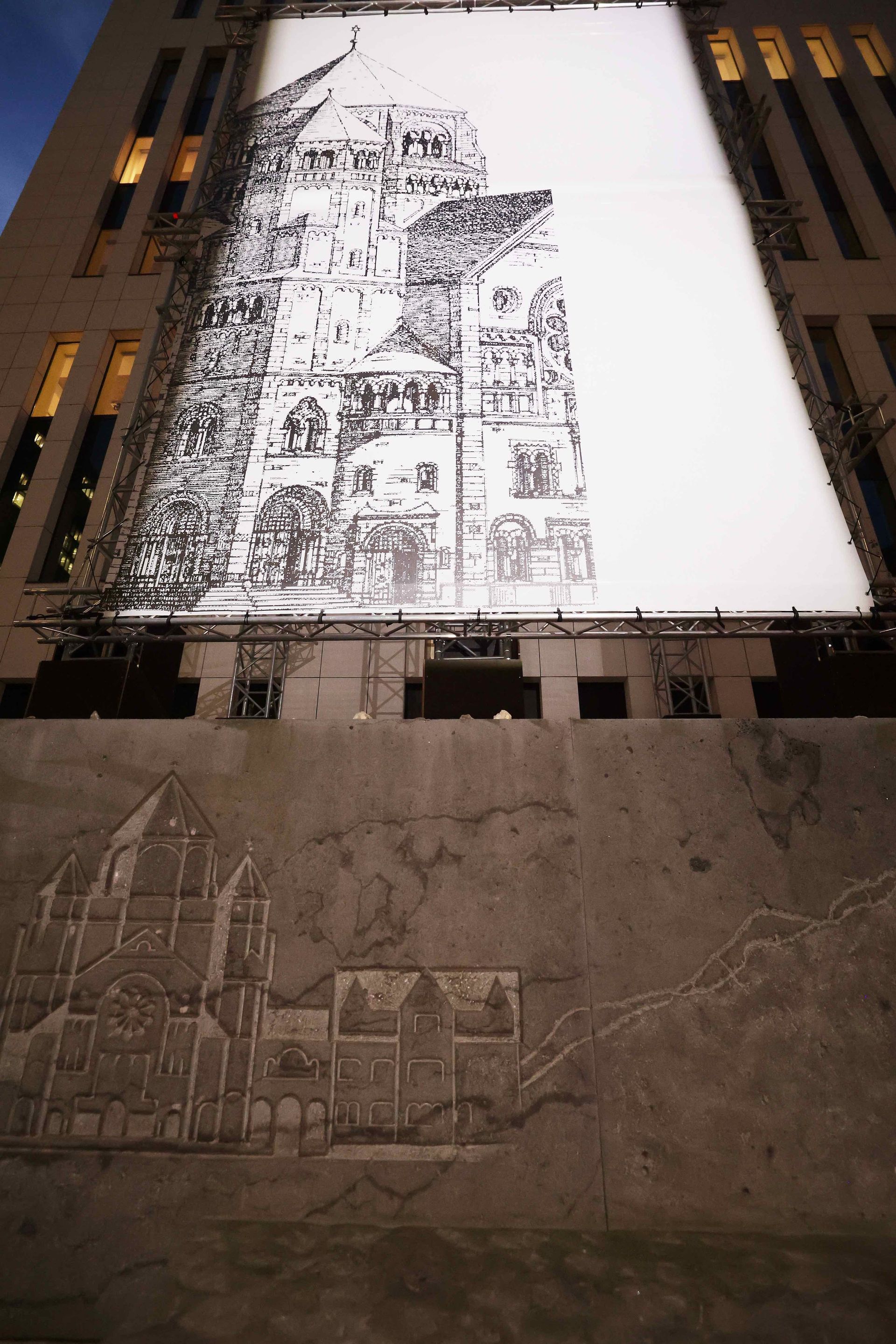 Düsseldorf commemorates the destroyed Great Synagogue in difficult times. Presentation of the light installation "missing link_" by Mischa Kuball