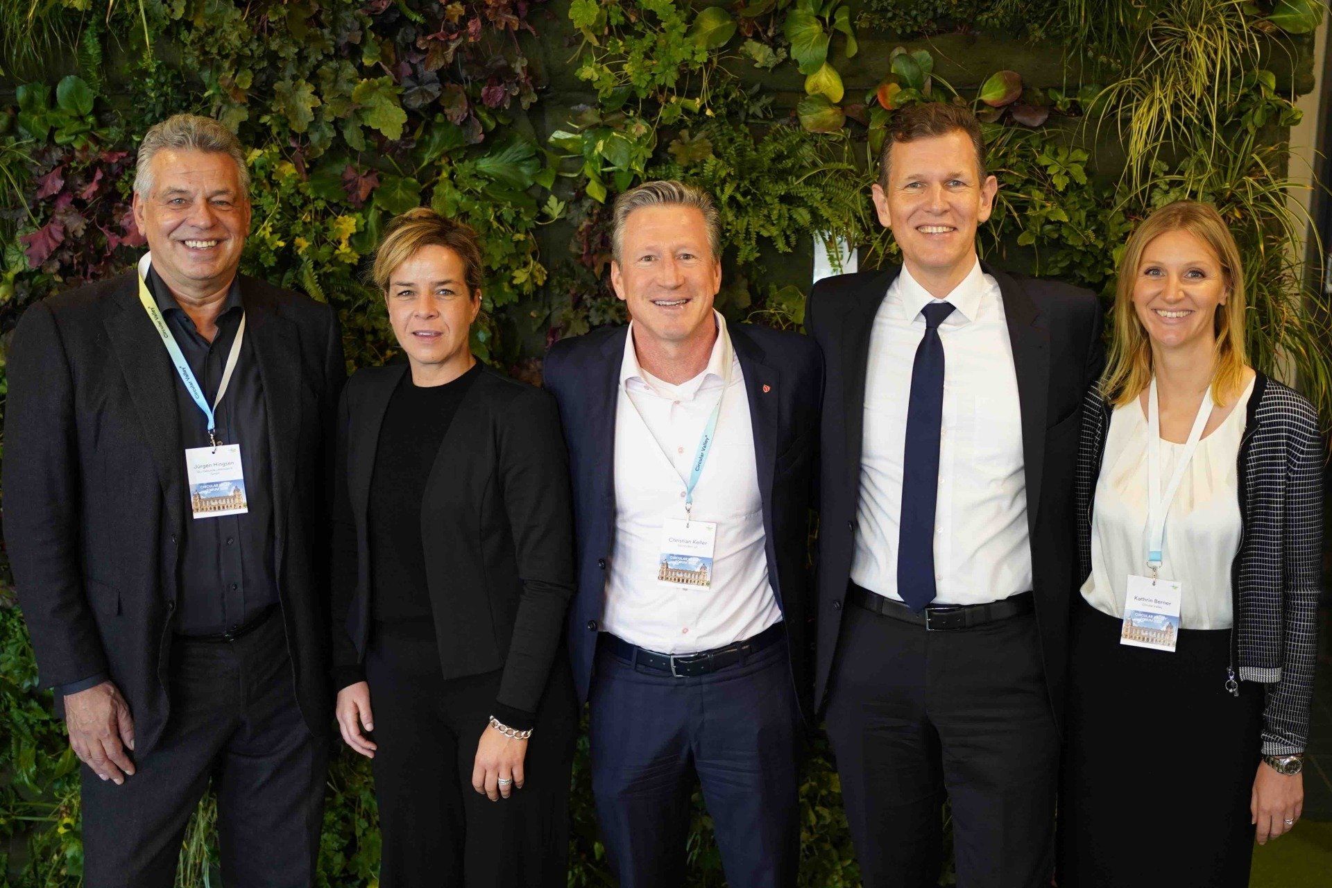 Gipfeltreffen vom letzten Jahr: Jürgen Hingsen, Ministerin Mona Neubaur, Christian Keller, Gründer Dr. Carsten Gerhardt, Kathrin Berner ©Foto Jan Turek, Circular Valley