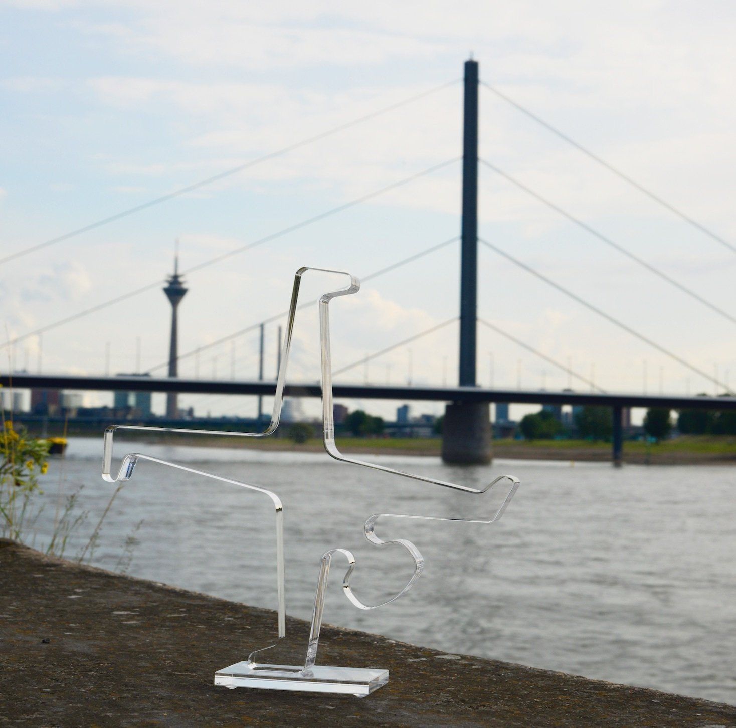 Heike Kappes: The original photomontages were from him. The first rejection was from Mayor Erwin with a categorical No. Later, as a board member of the Friedrich Becker Verein, I contacted him again, but also received a rejection. It would be too dangerous with people climbing around on it and falling off; so thousands of regulations. But the Friedrich Becker e.V. finally succeeded this year and donated a 3x3m sculpture to the Düsseldorf University of Applied Sciences.