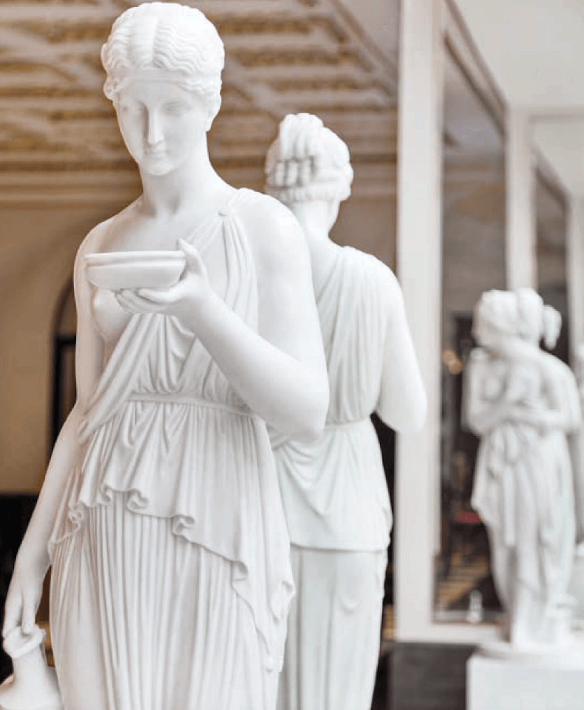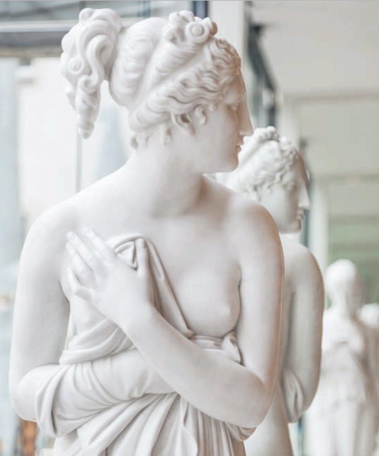 The cool elegance of the "Venus Italica" contrasts with the Renaissance foyer. It is a marble sculpture by the sculptor Antonio Canova (1757-1822), a master of Italian classicism. With this sculpture, Canova also adapted the formal language of the famous "Medicean Venus", an ancient Roman copy of the Greek goddess of love, Aphrodite, created around 300 BC and long owned by the Medici. Canova wanted his Venus to combine the ancient ideal with real-life models of his time. Princess Leopoldine of Esterházy (1788-1846) is said to have stood in portrait.