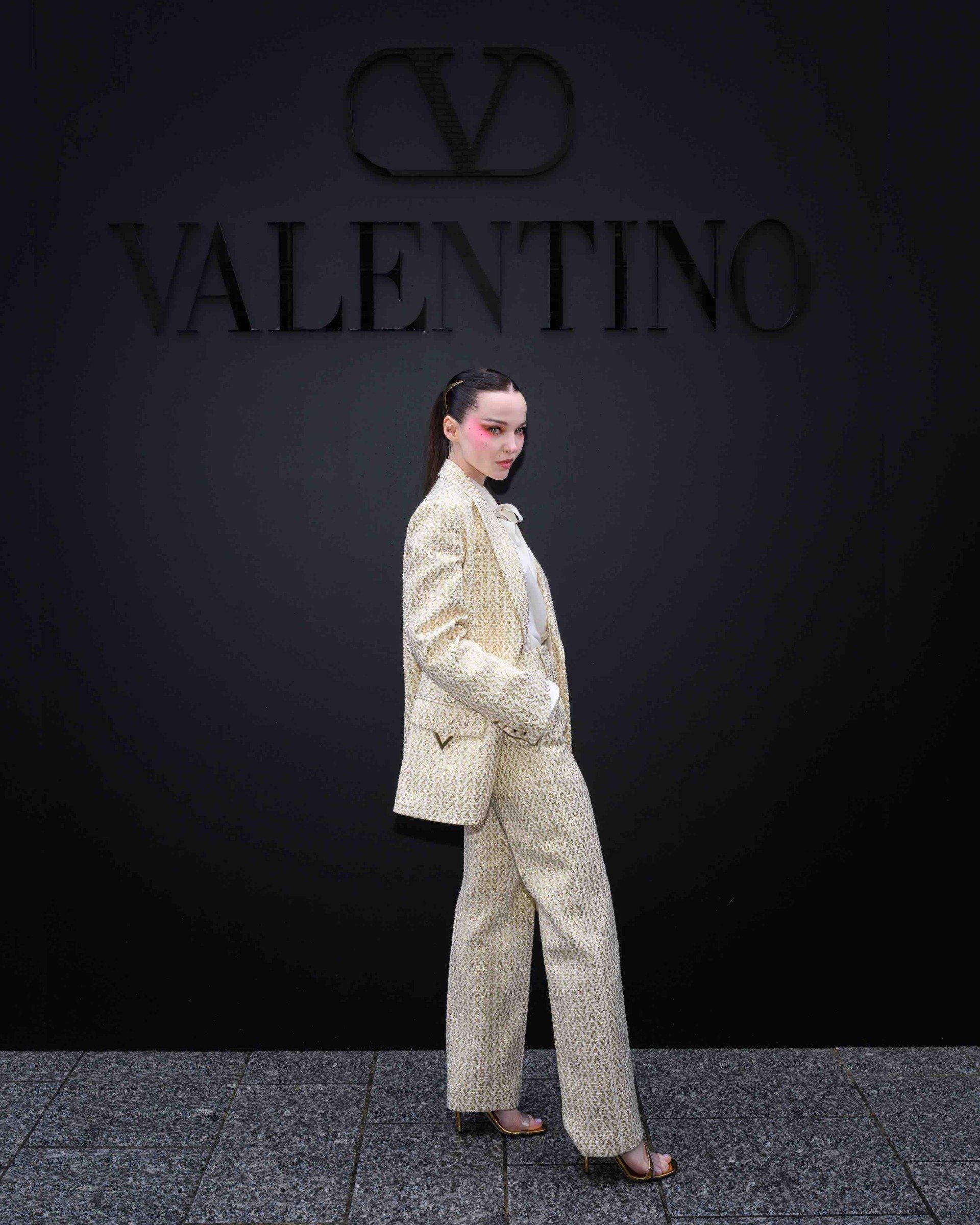 Im Carreau du Temple waren schwarze Bänke aufgebaut, mit schwarzen Einladungskarten, auf denen ganz eng aneinander die Gäste saßen. Darunter: Brooklyn Beckham und seine Frau Nicola Peltz-Beckham, der die Pariser Premiere der Kollektion seiner Mutter Victoria Beckham miterlebte. Sowie Dove Cameron, Ashley Park von Emily in Paris, Simone Ashley von The Bridgertons, Florence Pugh, Leonie Hanne, Jenna Ortega (alias Wednesday Addams), Madelaine Petsch und eine Vielzahl von Influencern. Nicola Peltz-Beckham, Brooklyn Beckham und Dove Cameron waren in Valentino Nude und Erdtöne gekleidet, offensichtlich bereits die neue Valentino Kollektion.