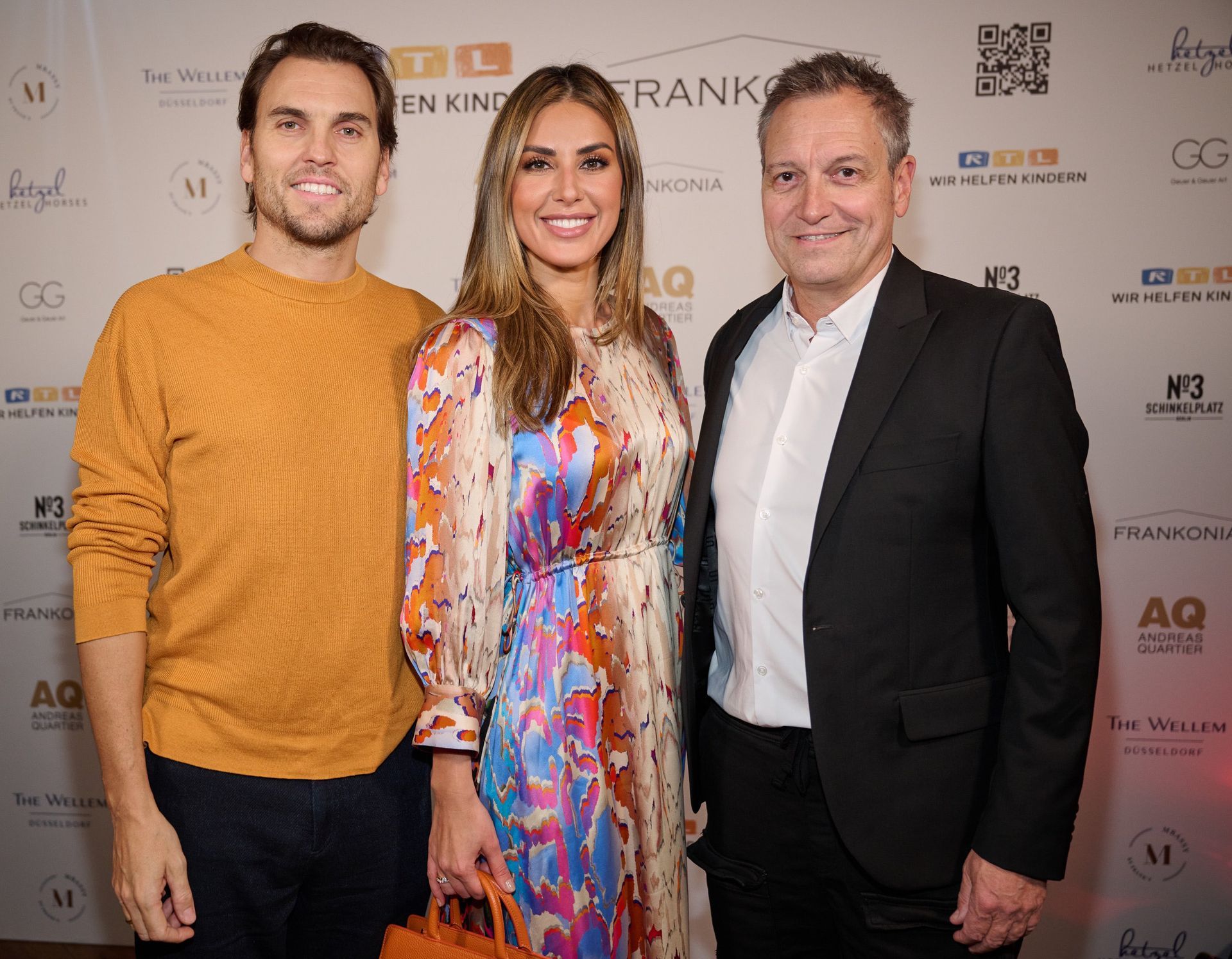 Ute Wethmar, Geschäftsführerin Mey & Edlich und Testimonial Michael Pichler bei der Eröffnung im Kunstpalast. Er trägt die Tod & Teufel Lammlederjacke in „unendlichkeitsschwarz“.