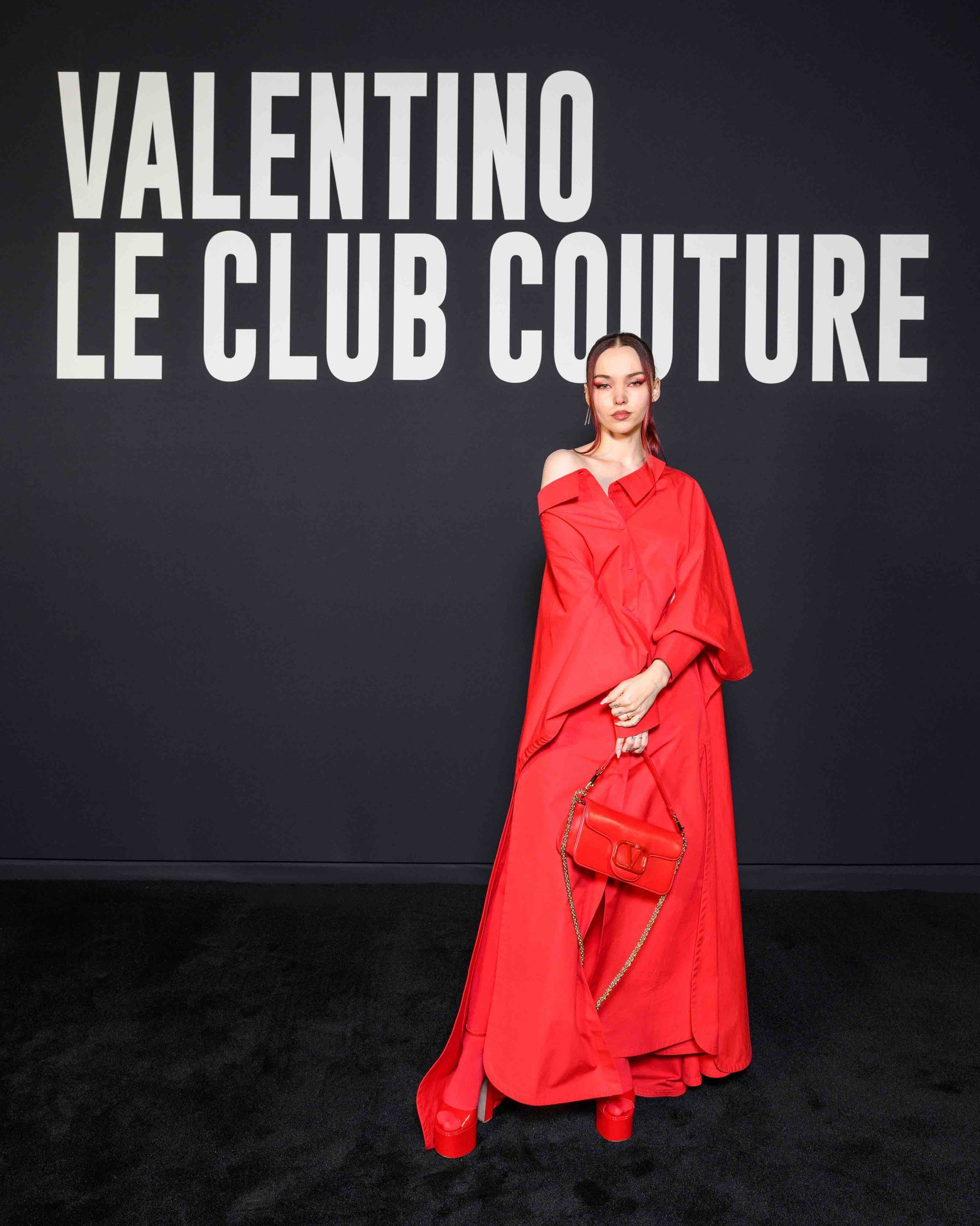 Dove Cameron in Valentino look from the Spring Summer 2023 Unboxing Collection, Valentino Garavani Loco’ bag and shoes