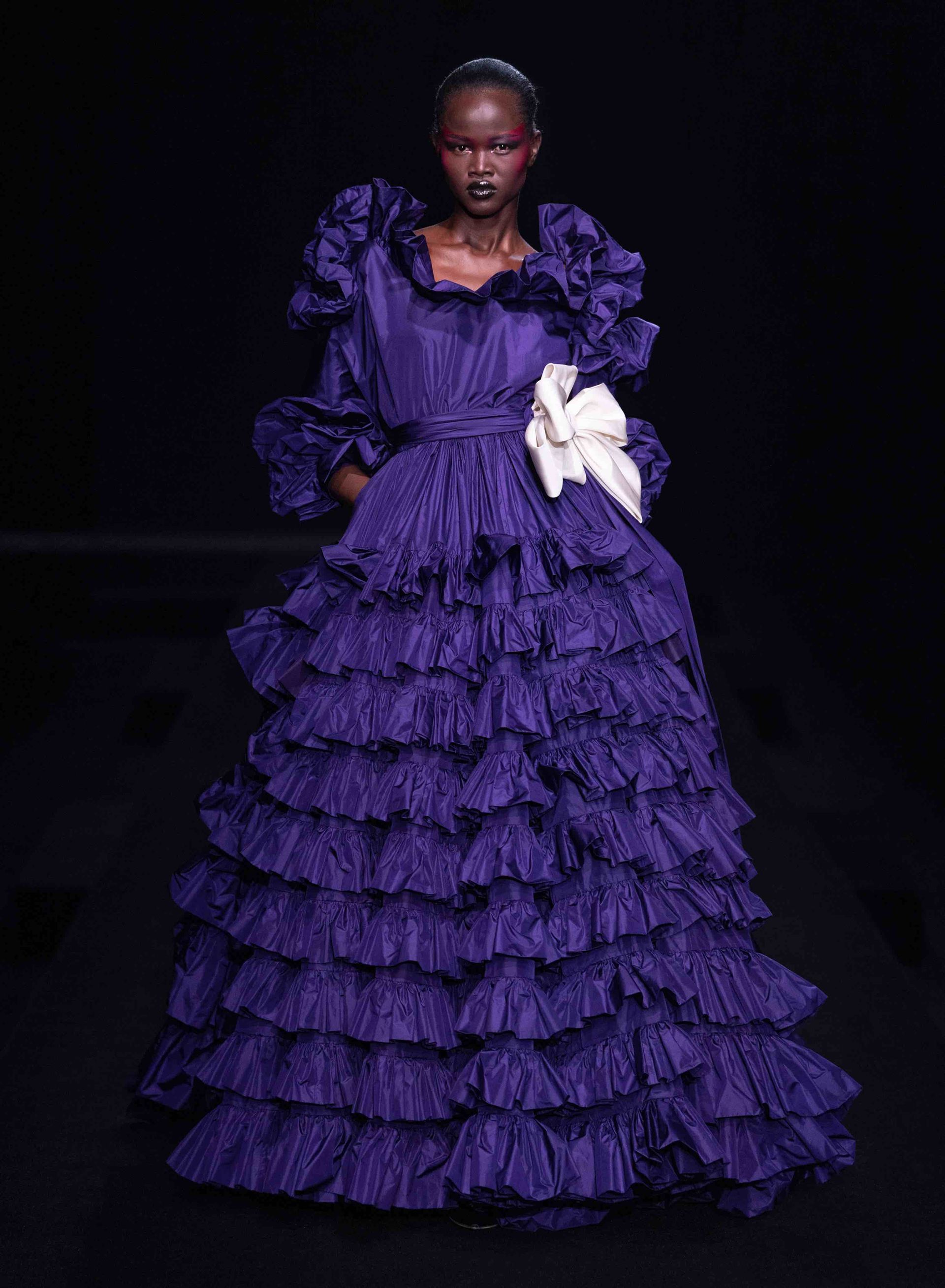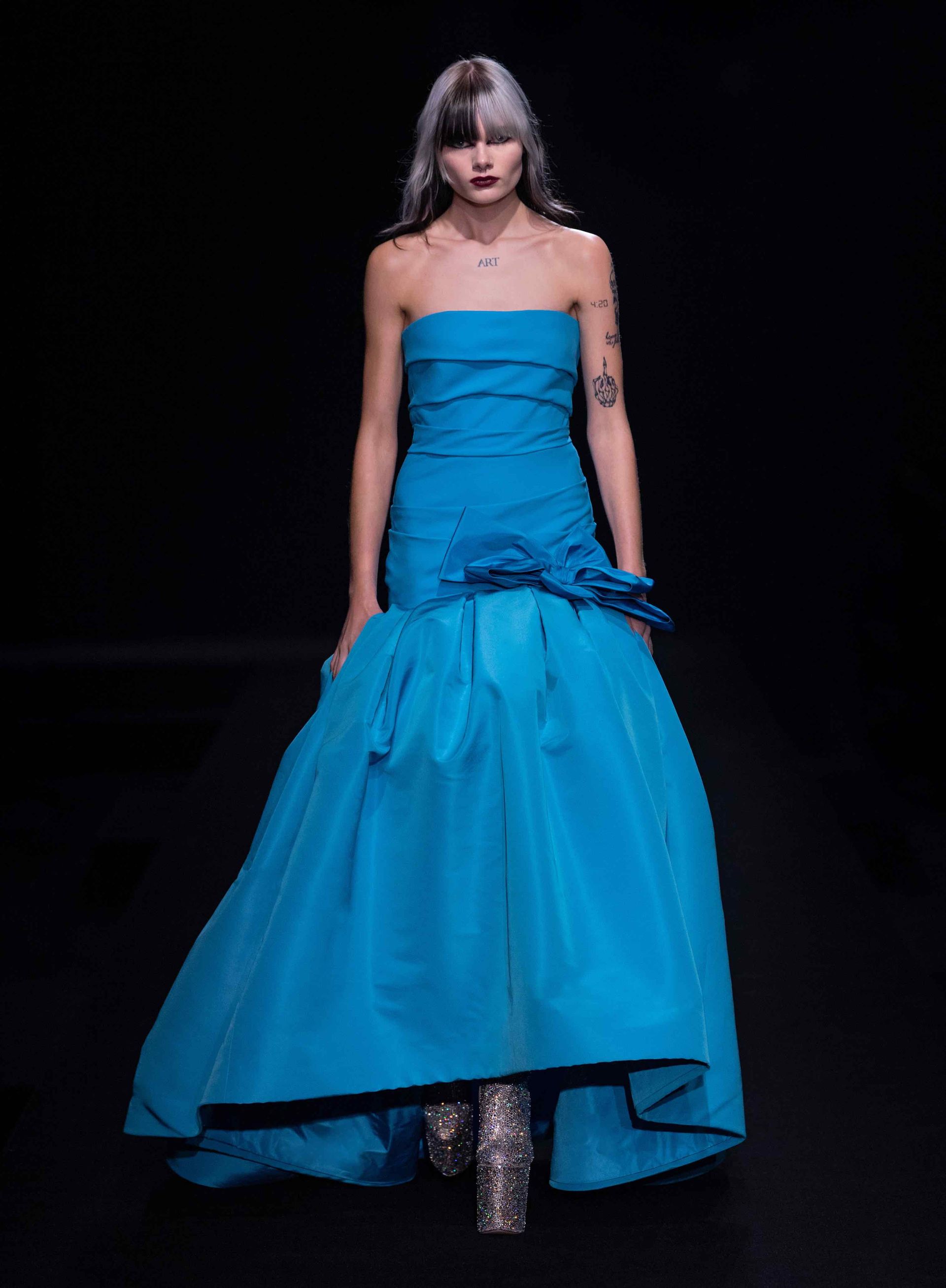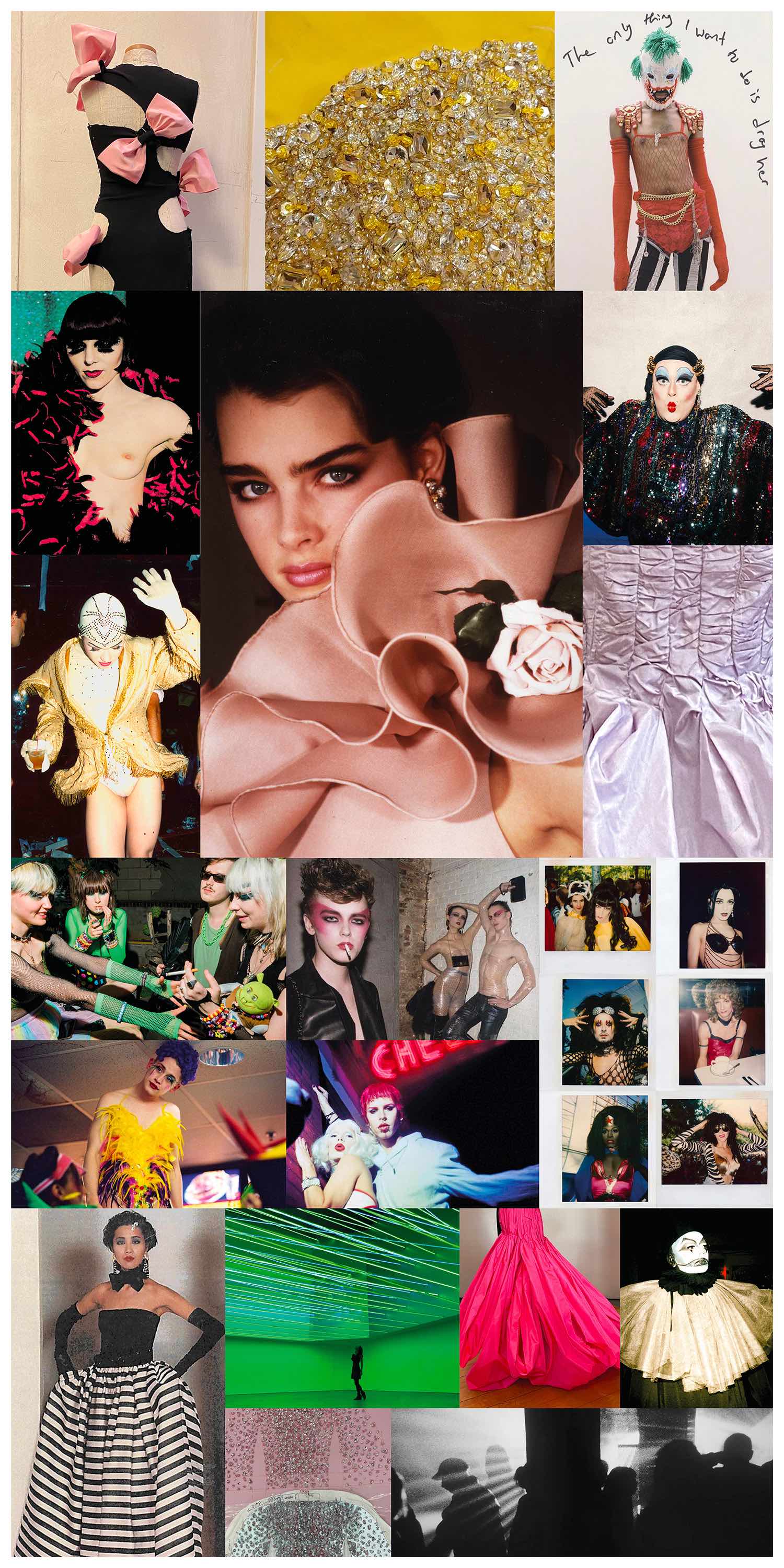 Head designer Pierpaolo Piccioli's mood boards are always highly interesting. Valentino Le Club Couture is inspired by the rich imagery of the club scene and so original tickets from Nirvana, The Plastics or even colourful club flyers from the 80s found their homage in the fashion. The theme of the Pierrot, the lovable tragic character, could be found again in many models. And the 80s staging of Valentino muse Brooke Shields in the legendary pink evening dress with asymmetrical ruffled collar was also to be found in several models.