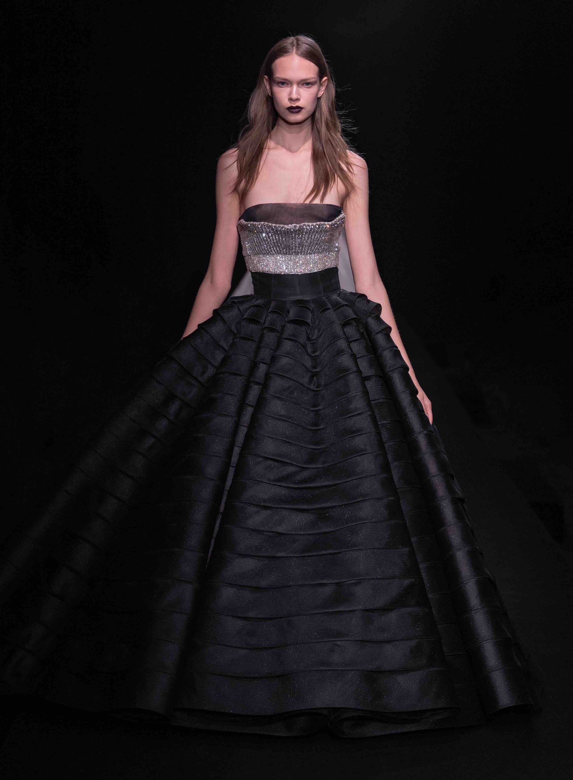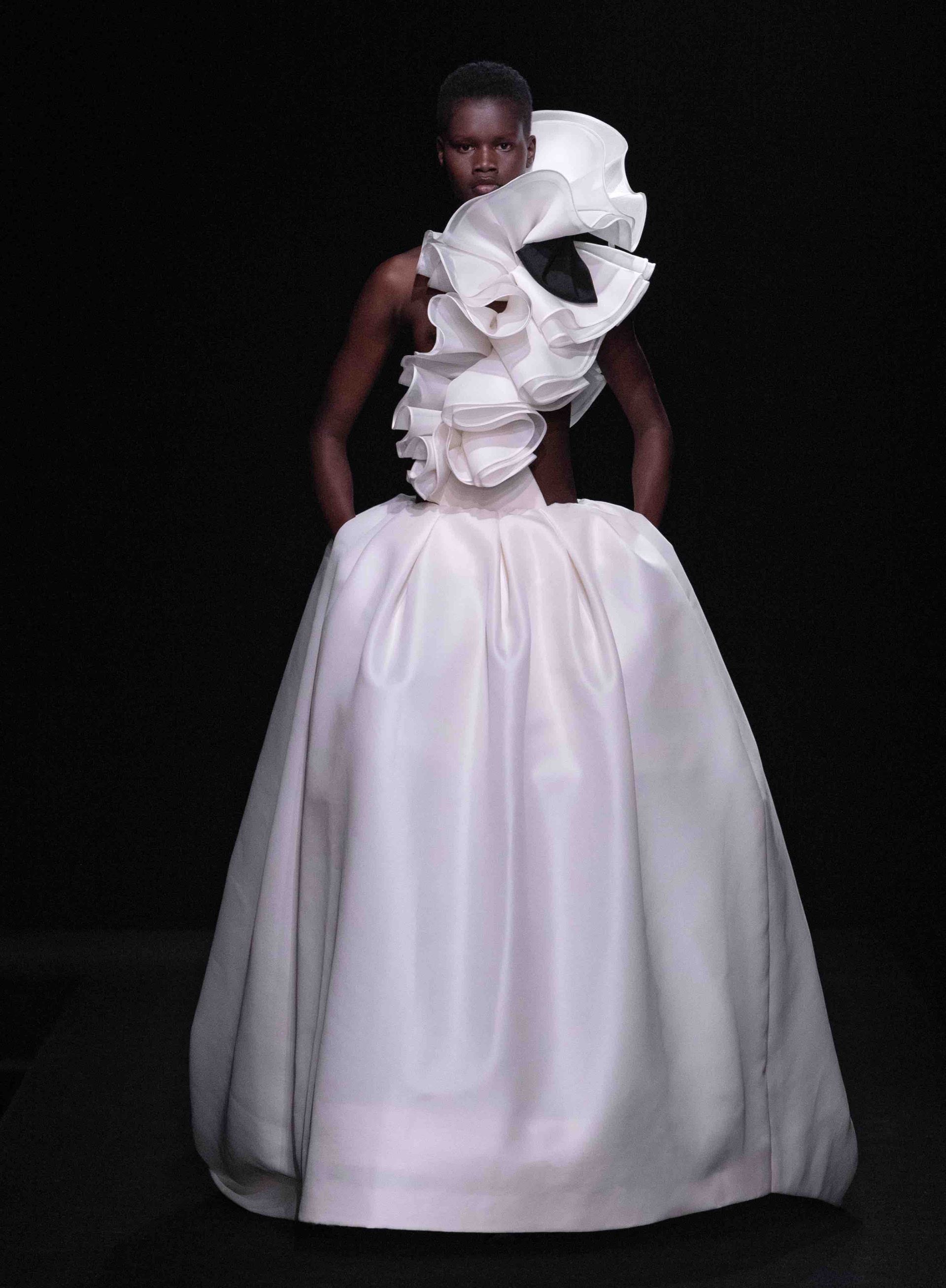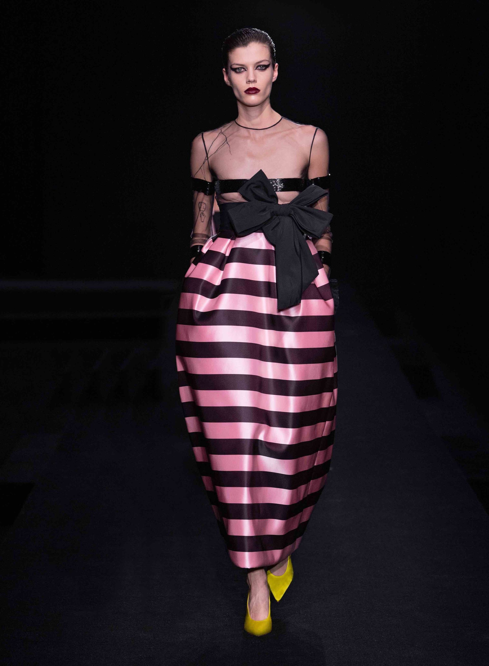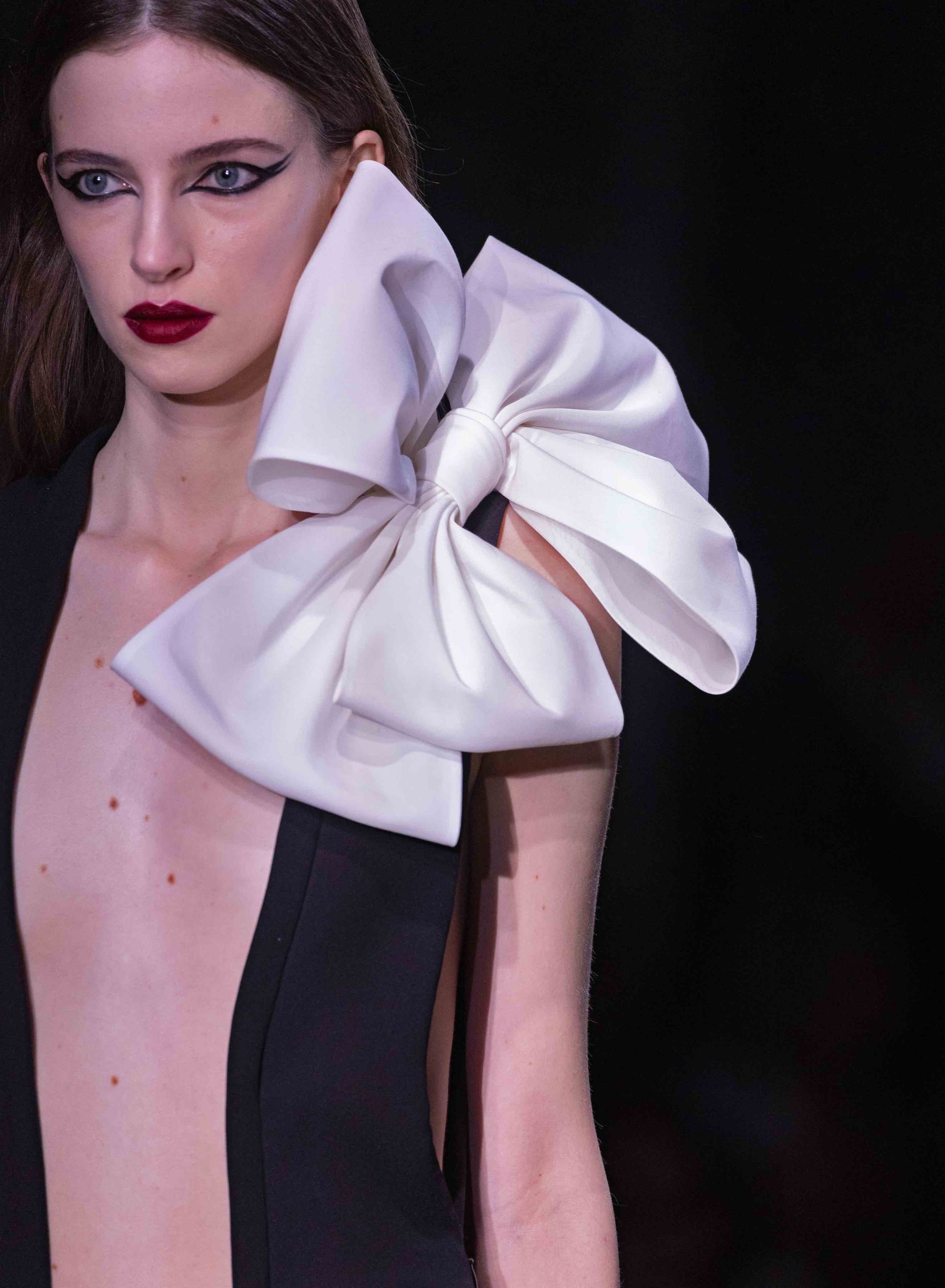 The bow theme was to be a defining feature of the rest of the show, with the black bow appearing most frequently. An ultra-feminine symbol, the bow did not just appear as decoration, but linked complex couture garments together.