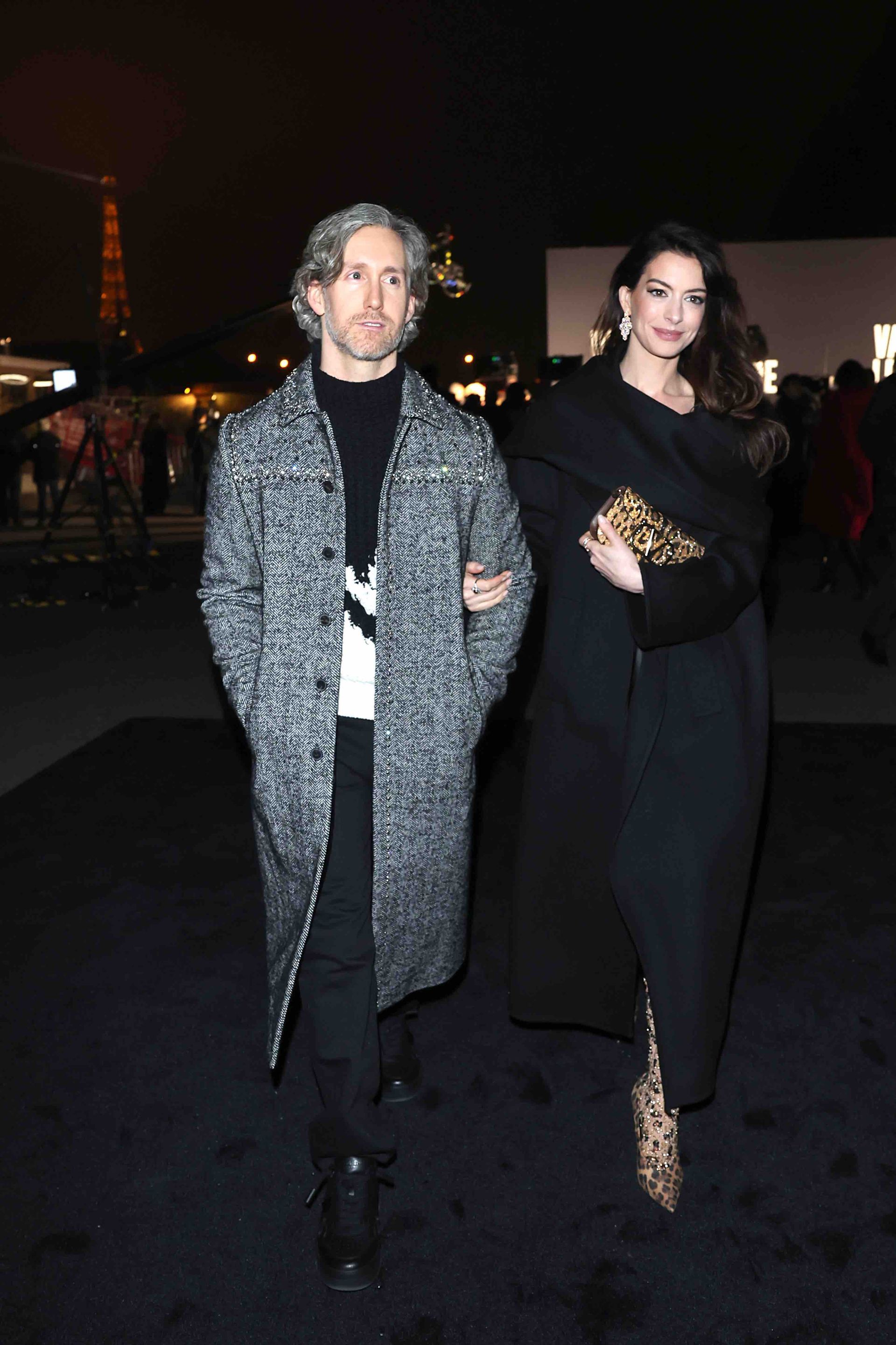 Anne Hathaway, with husband Adam Shulman appropriately in coats, as it was -1 degrees in Paris.