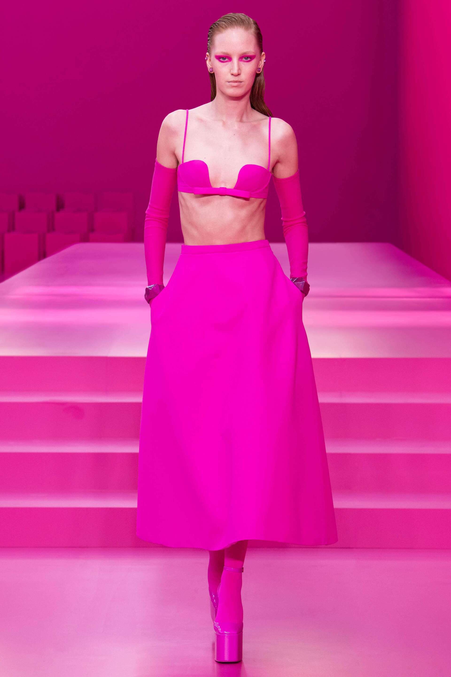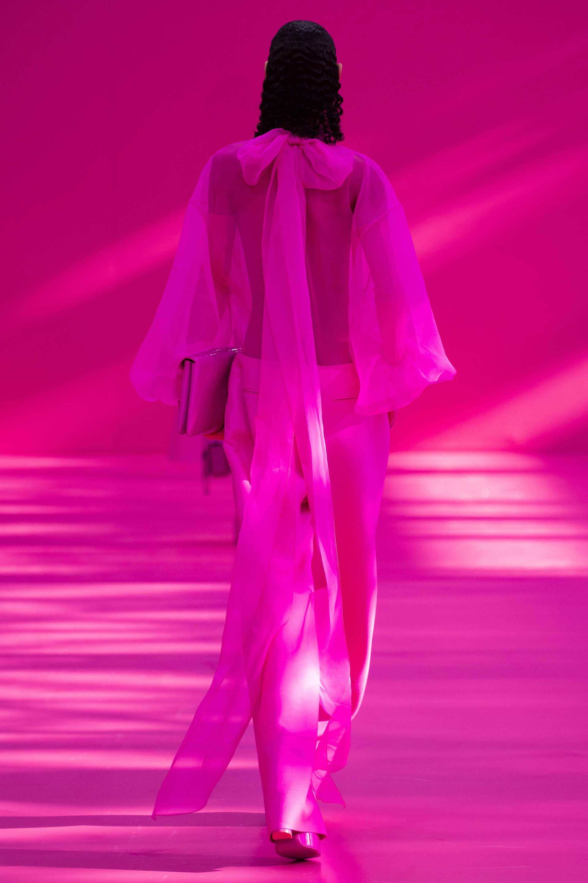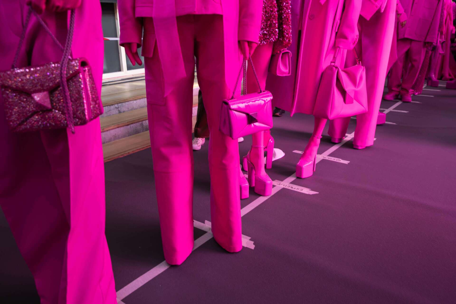 For the VALENTINO PINK PP COLLECTION AW 22 23, Pierpaolo Piccioli designed the dresses with the experimentation of a radical gesture. The color palette was reduced to a single shade, a special fuchsia pink. The designer created his pink in collaboration with the Pantone Color Institute. The color pink created a unique identity in the show, it was an absolute individuality and is unrepeatable in itself.