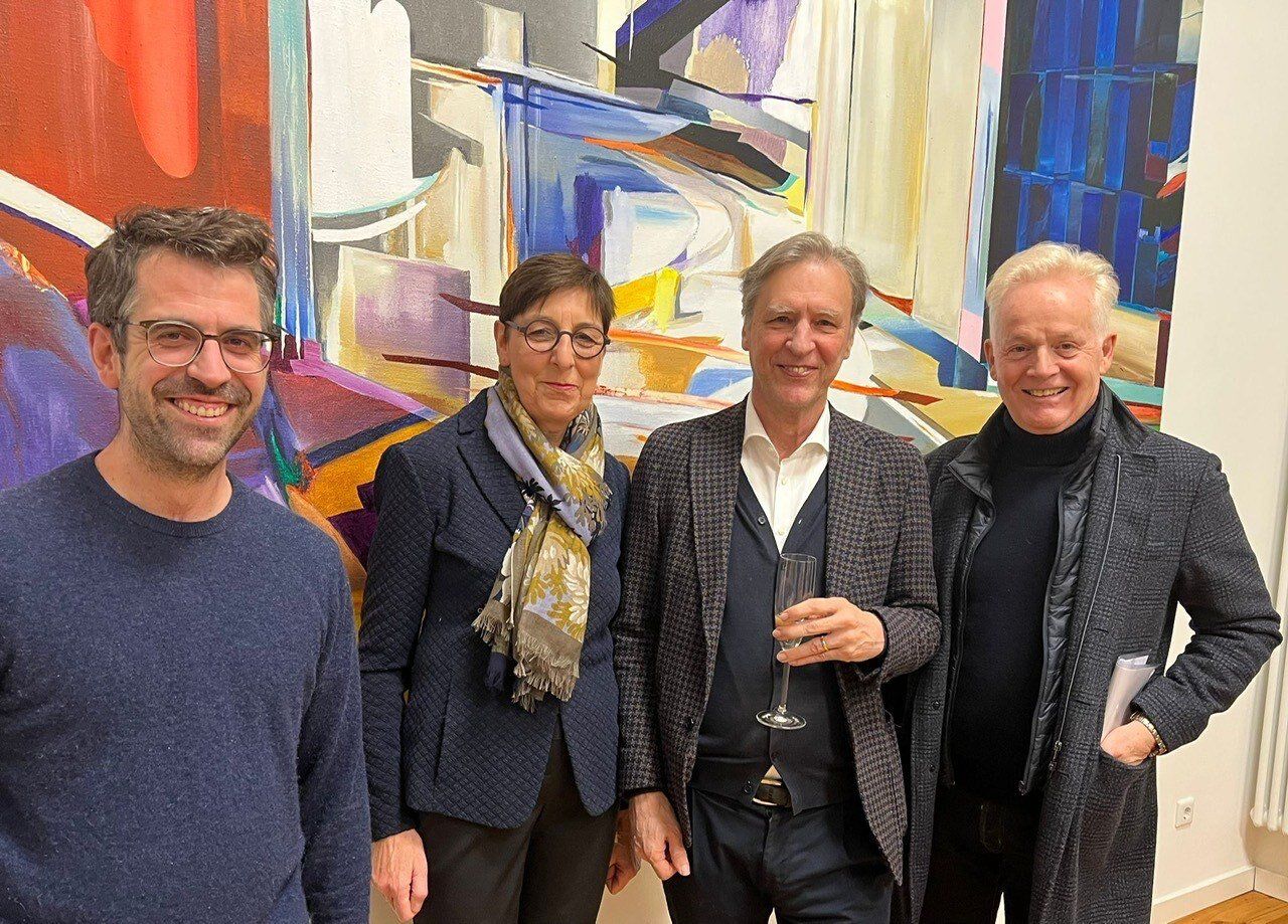 From left to right: artist Florian Flausch, gallery owner couple Jutta Bengelsträter-Ewest and Werner Ewest, FU board member Georg Rotthege ©Die Familienunternehmer