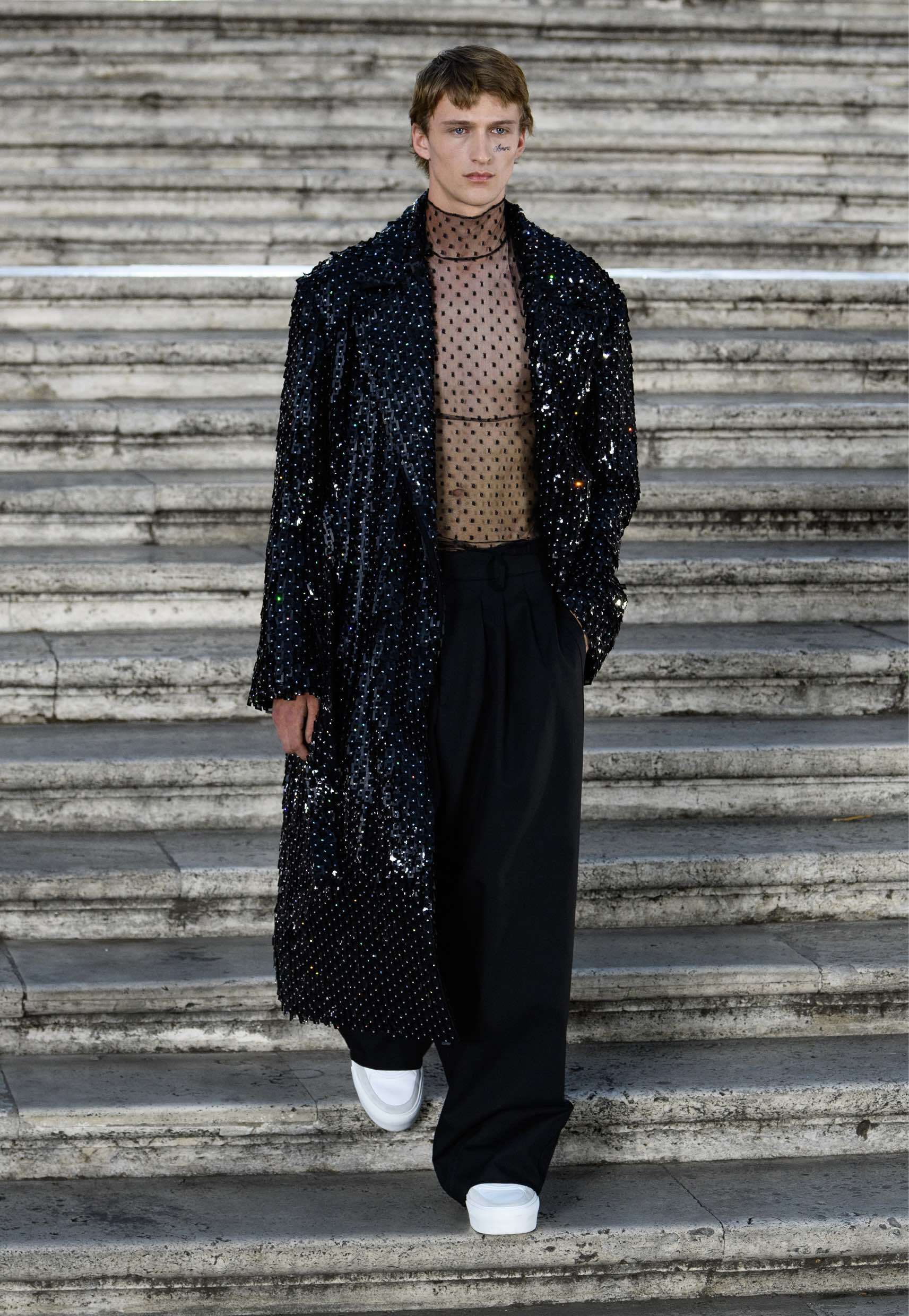 "I wanted the final photograph of my show, in the most symbolic place in Rome, to show faces, bodies and skin colours that populate the outskirts of our big cities but are not yet part of the official and institutional photography of the world," commented Pierpaolo Piccioli.