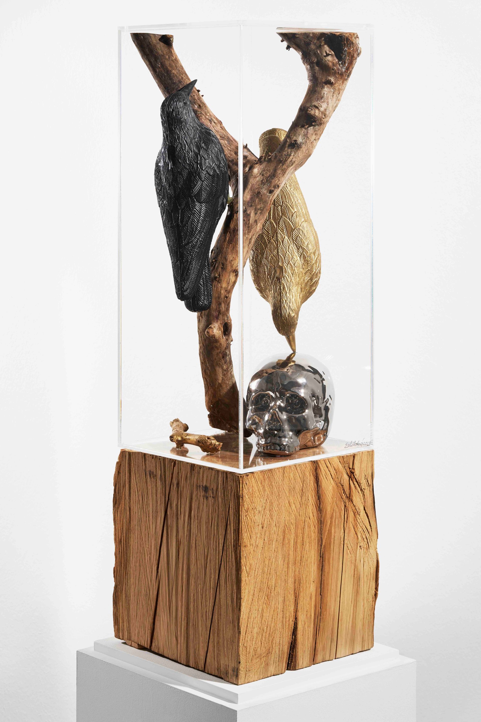 The originally uniform blocks were then turned into 31 different works of art. The New Zealand artist David McCracken, for example, turned his block into wood wool and placed a bomb-shaped sculpture on top. Jana Želibská's (Czech Republic) group of sculptures under Plexiglas combines withered wood, raven figures and a metal skull to create an allegory of death. IRWIN from Slovenia used the cuboid as a kind of advertising pillar with the inscription "Time for a new state. Some say you can find happiness there".