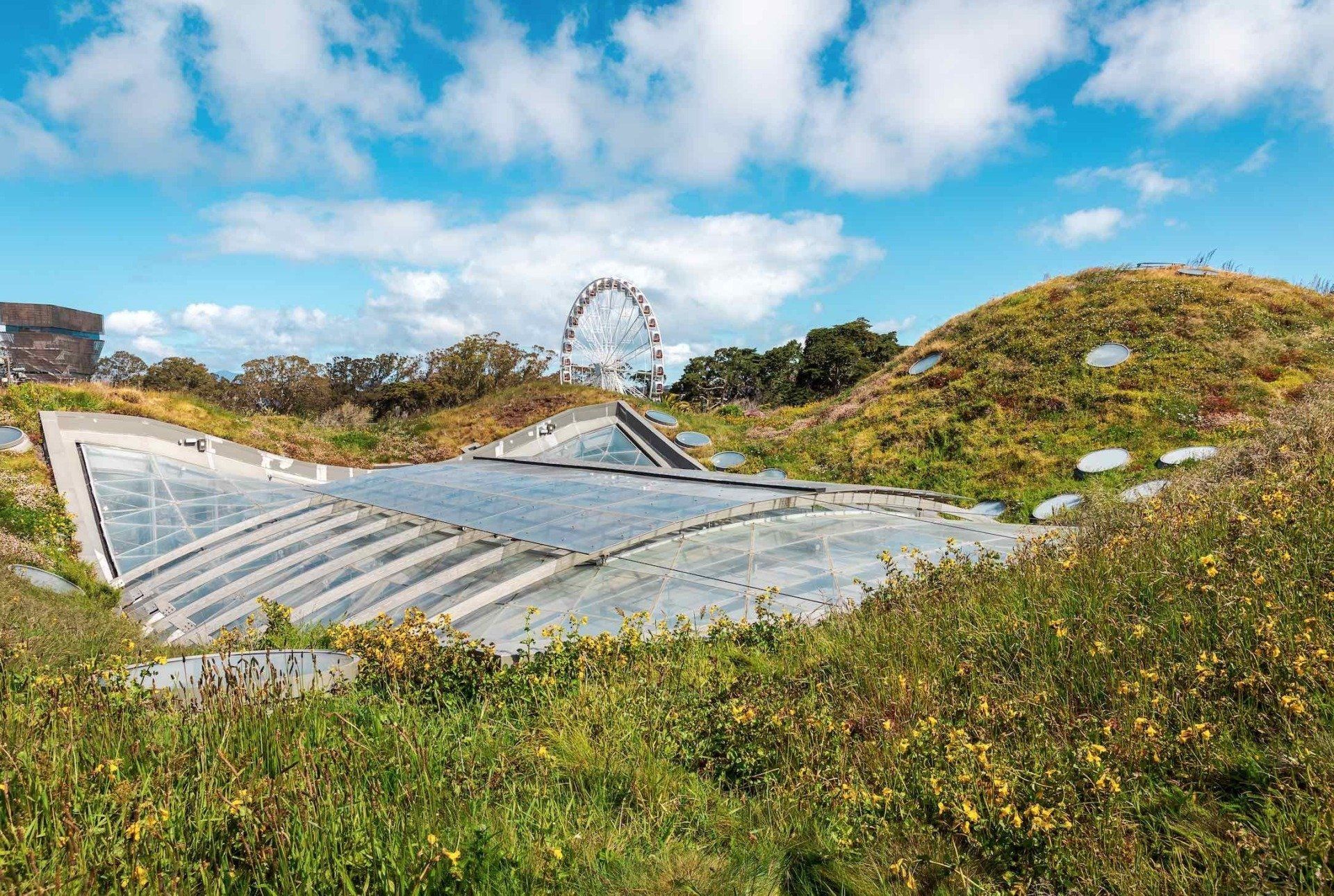 For the green roof of the California Academy of Science, Renzo Piano was inspired by the seven great hills of San Francisco: Telegraph Hill, Nob Hill, Russian Hill, Rincon Hill, Mount Sutro, Twin Peaks and Mount Davidson (Wikipedia). The living roof is the heart of the Academy. Weather stations on the roof monitor wind, rain and temperature fluctuations to control the building's automated systems and skylights. This is important for the temperatures of the rainforest inside the academy and the piazza inside. In addition, natural light streams into the exhibition spaces.
