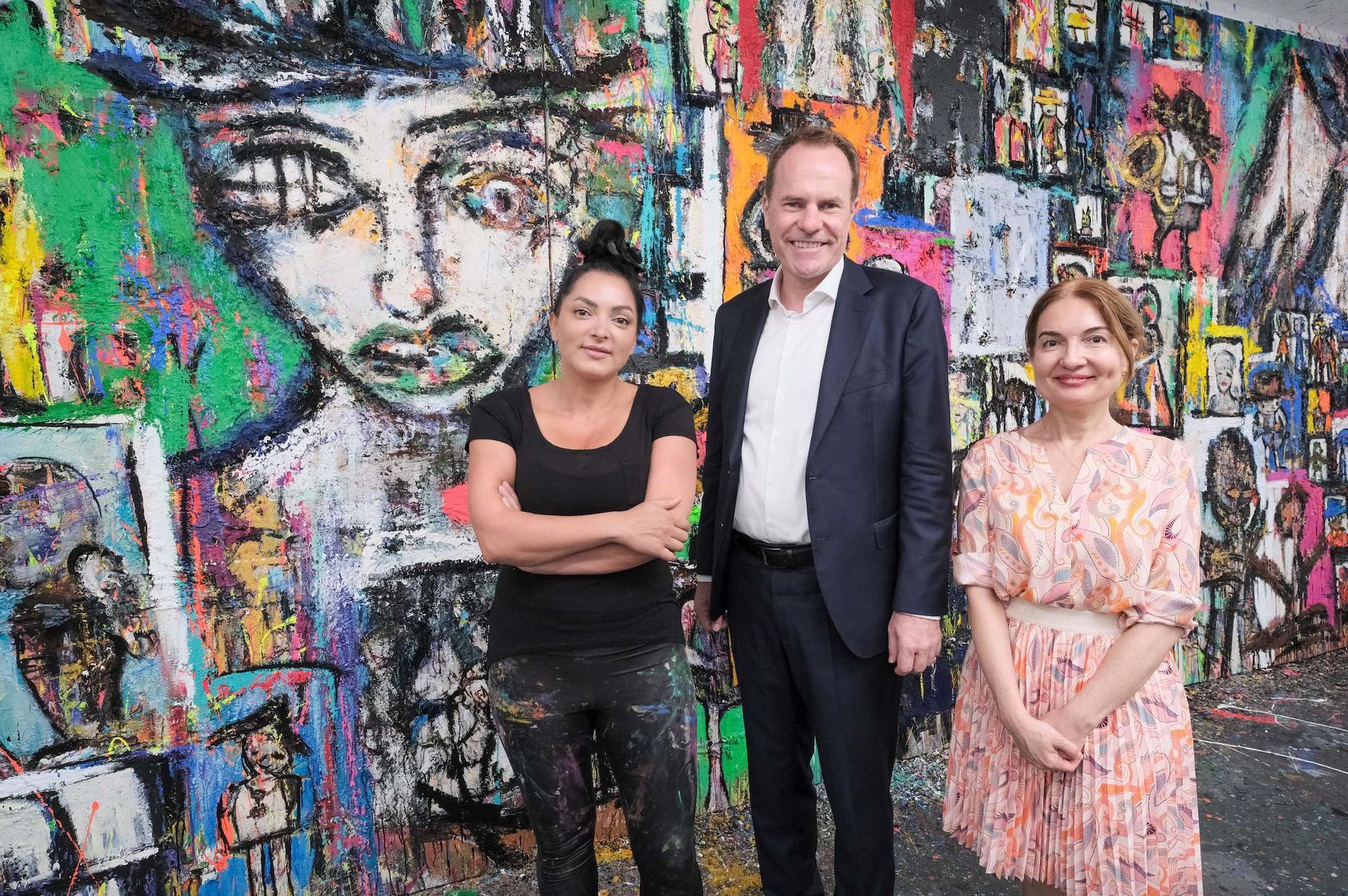 Düsseldorf, July 21, 2023: Today, Lord Mayor Dr. Stephan Keller and the Turkish Consul General Ayşegül Gökçe Karaarslan visited the studio of the Düsseldorf artist Meral Alma. According to the city, the idea for the joint studio visit arose during a reception at the city hall of the state capital Düsseldorf on the occasion of the 60th anniversary of the so-called "Anwerbeabkommen" (recruitment agreement) between the Federal Republic of Germany and the Republic of Turkey in November last year. At that time, Germany was in urgent need of workers, and both cultures continue to shape social life to this day. For Ayşegül Gökçe Karaarslan it is one of her last appointments in Düsseldorf, because she will return to Turkey in September and new tasks await her.