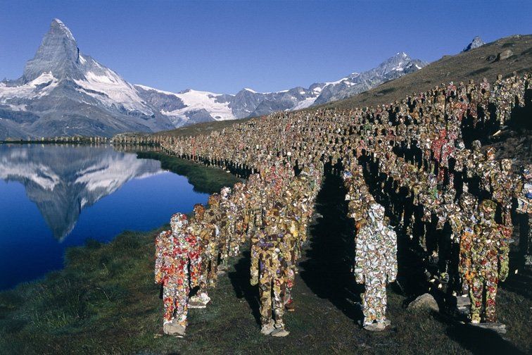 HA Schult: Ja, nachdem sie unter dem Matterhorn standen, in 2700 Metern Höhe, hatte ich die Idee, sie an einen Ort zu bringen, der uns in Deutschland im Moment sehr beschäftigt und der in der Welt der einzige Versuch ist, die Atombrennstäbe wenigstens vernünftig zu entsorgen. Denn weder die Amerikaner noch die Russen machen sich darüber ernsthafte Gedanken. Die Deutschen haben sich Gorleben aufgeladen und für 1,5 Milliarden Euro ein Endlager gebaut, das aber aufgrund politischer Positionen nicht bespielt werden kann, das ist in 880 Meter Tiefe in diesem Ort Gorleben. Ich hatte die Idee, diesen Ort einmal aus einem anderen Blickwinkel zu sehen und nicht so vordergründig nur durch Demonstrationen zweimal im Jahr. So wie bei uns in Deutschland der Karneval stattfindet oder das Oktoberfest, finden in Gorleben Demonstrationen statt. Die Teilnehmer sind schon abgestumpft; eine Generation von Demonstranten, die auch schon ihre Kinder dazu erzogen hat, zu demonstrieren. So wird das zum Ritual, und dann heißt es, jetzt müssen wir schon wieder nach Gorleben. Auch die Redaktionen, vom Spiegel bis zum Stern, oder die großen Agenturen schicken nur mehr Azubis dort hin, denn darüber haben sie sich bereits die Finger wund geschrieben. Es war aber auch das Bestreben der Politik, dieses Thema immer unter den Teppich der Verdrängungen zu kehren.