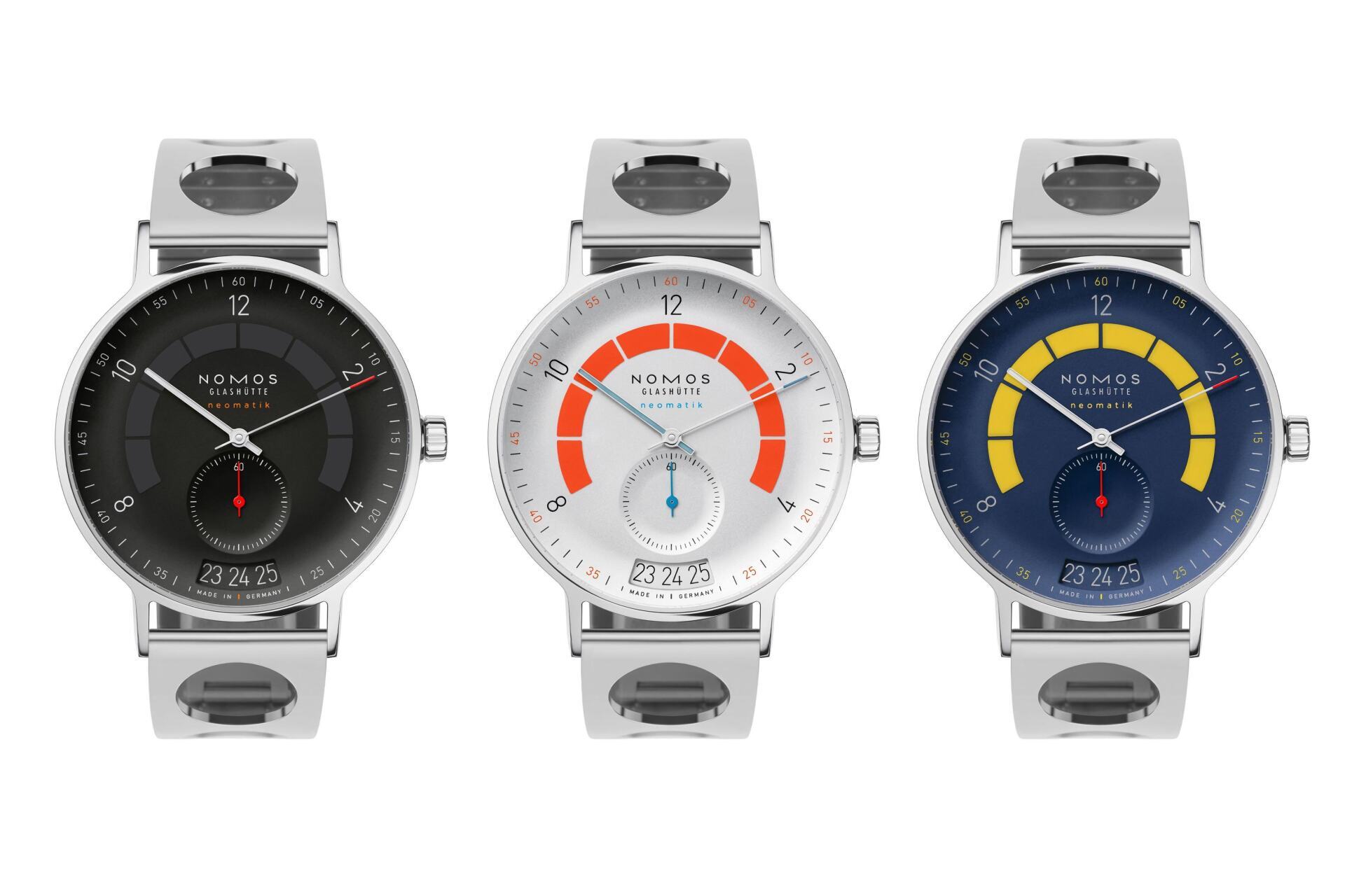 You can't see it right away, but the watches are a motorway triangle: the German motorways A9, A3 and A7 (from left) meet here. Because: This is the "Director's Cut" of the NOMOS Autobahn watch. In favourite colours of its designer Werner Aisslinger, each is limited to 175 pieces.