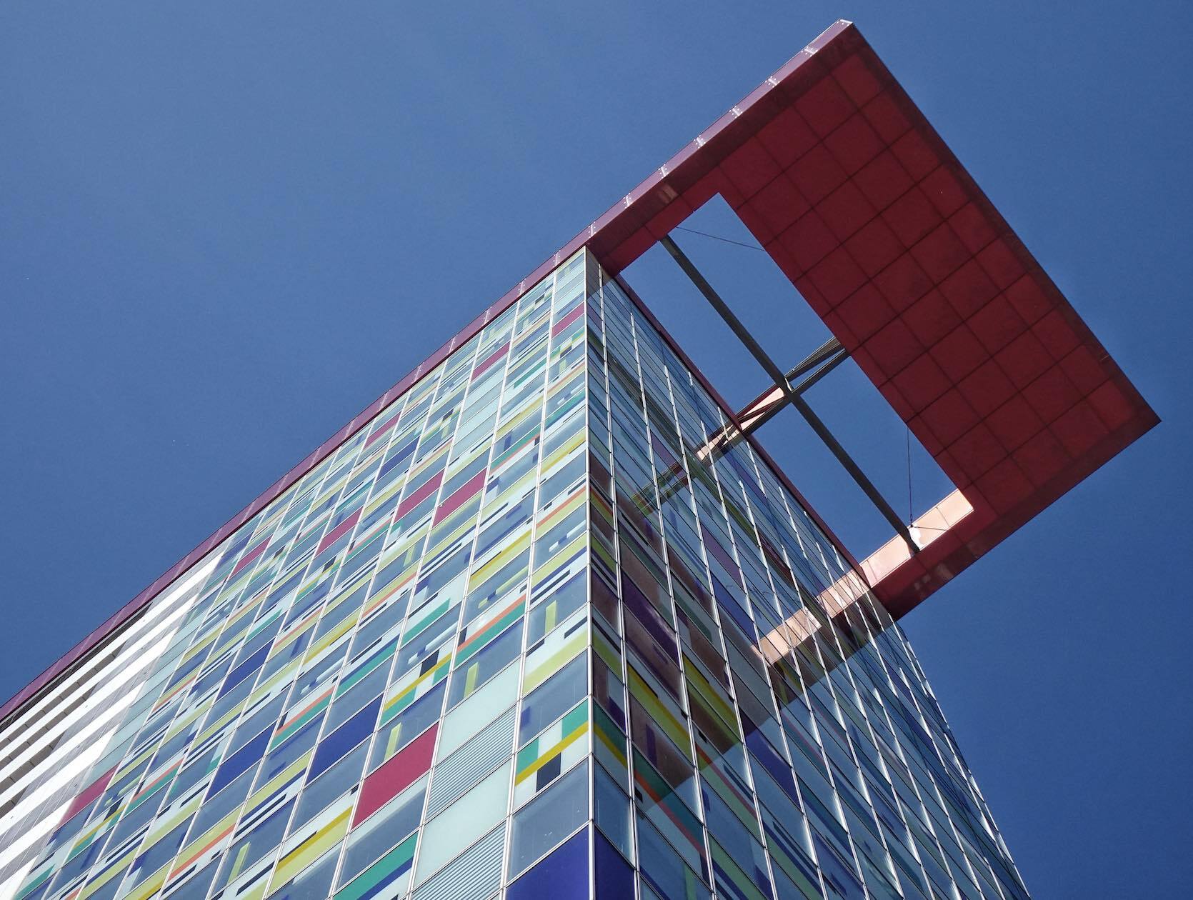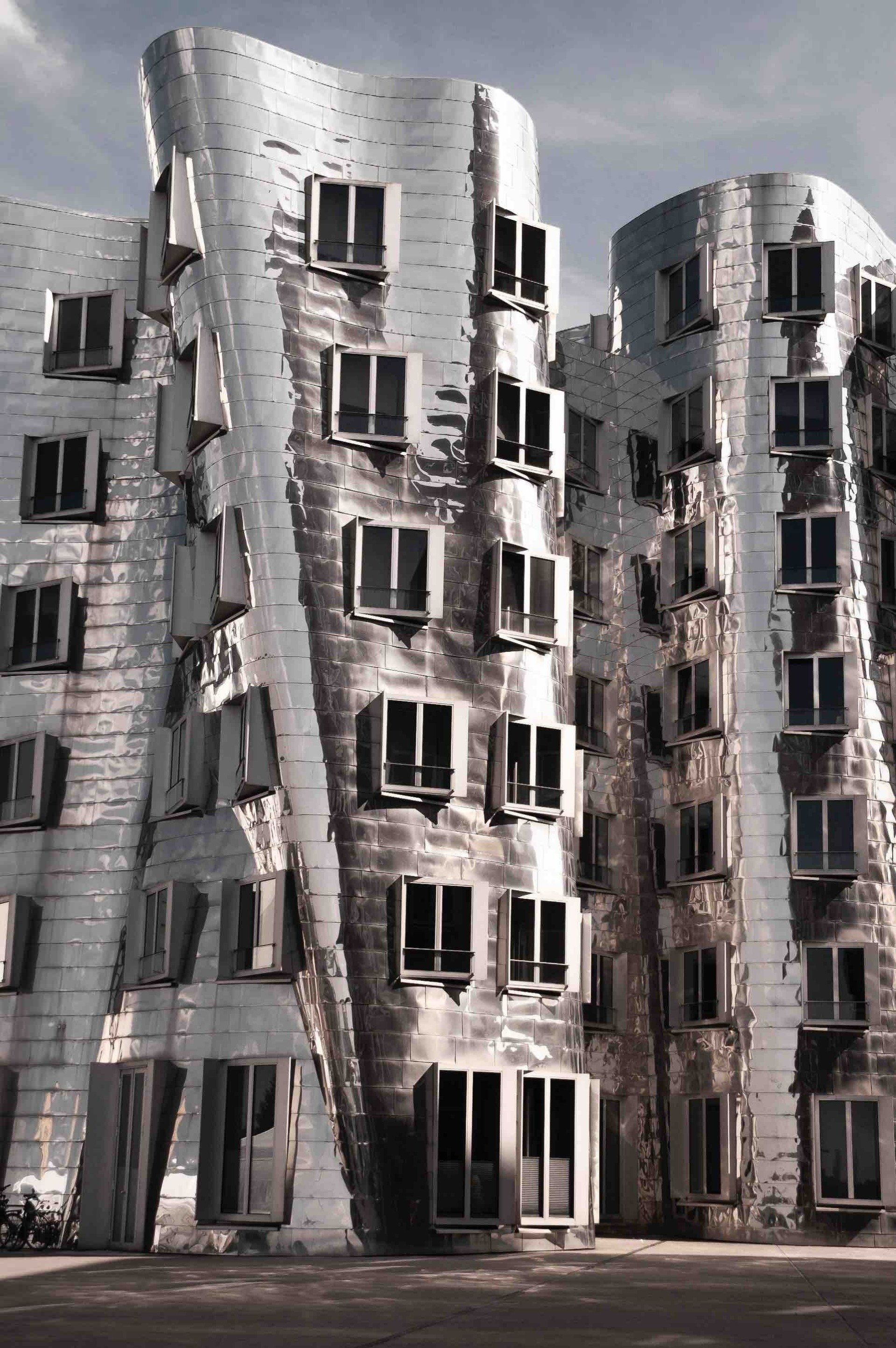 Düsseldorf's architecture lives diversity. The iconic triad by Frank O. Gehry in the MedienHafen and the spectacular Kö-Bogen 1 and 2, with the largest green façade in Europe, designed by New York star architect Daniel Libeskind and the Düsseldorf office of Ingenhoven, are definitely worth seeing. Other highlights include the Dreischeiben skyscraper, built in 1960 to a height of 94 metres as a symbol of the economic miracle. Classical architecture from the first quarter of the 20th century can be found at the Tonhalle and Ehrenhof, the Carsch-Haus, Wilhelm-Marx-Haus and the Behrensbau on the banks of the Rhine. Even further back in history is Benrath Palace in the south and Jägerhof Palace, home of the Goethe Museum. A new addition is the Float office building on Holzstrasse, designed by Renzo Piano.