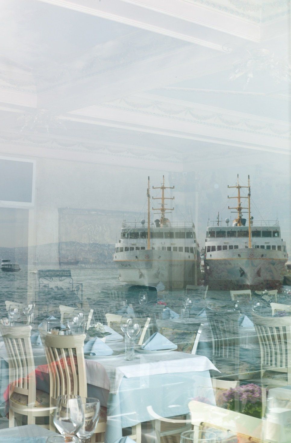 I was photographing on a glass window of a restaurant and I saw what was happening inside the restaurant and I noticed the reflections of the furniture on the glass. I was fascinated and felt that in this situation everything came together, touched and overlapped. The reflection created completely new references, not only in terms of color or shapes, but also in terms of content. This was the moment when I decided to continue working with the reflections. For me, the core of this work is the condensation, the coexistence of nature and architecture, of man to man, of forms to colors all together in coexistence.