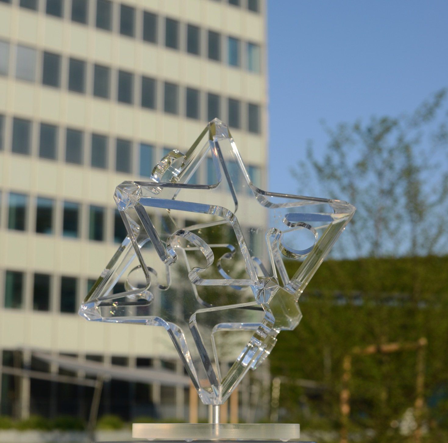 Heike Kappes: The original photomontages were from him. The first rejection was from Mayor Erwin with a categorical No. Later, as a board member of the Friedrich Becker Verein, I contacted him again, but also received a rejection. It would be too dangerous with people climbing around on it and falling off; so thousands of regulations. But the Friedrich Becker e.V. finally succeeded this year and donated a 3x3m sculpture to the Düsseldorf University of Applied Sciences.