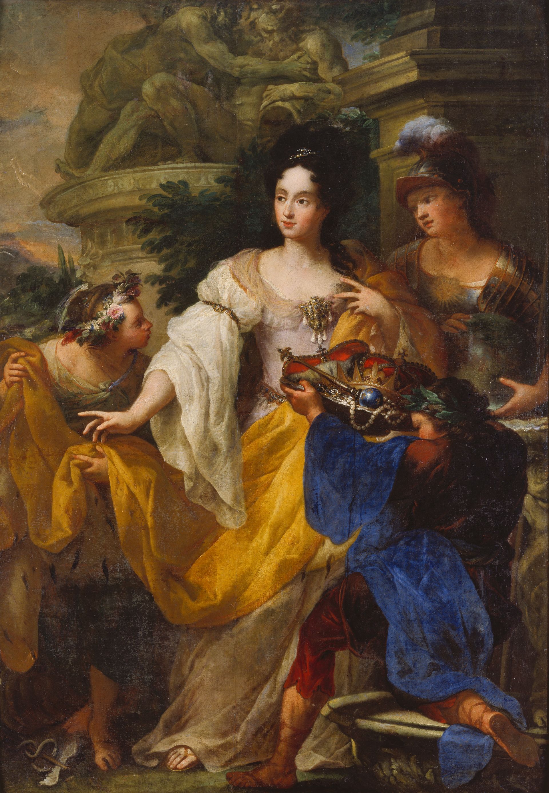 Antonio Bellucci, 1654-1726 (attributed) Minerva, Mercury and Plutus pay homage to the Electress Anna Maria Luisa de'Medici, after 1706. 230x160 cm Oil on canvas. Kunstpalast Düsseldorf, on permanent loan from the Kunstakademie Düsseldorf (NRW)