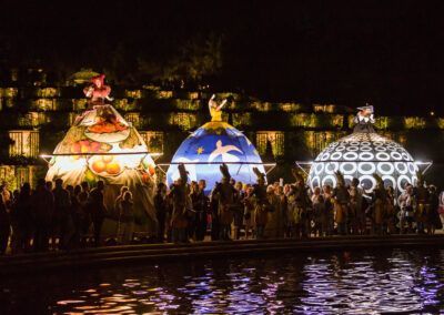 and so the motto "oranje", "Holland in Potsdam", is celebrated. So the motto of the evening changes from "gorgeous" to "PRACHTIG!" Potsdam sees orange! The historic palaces lend their walls to fantastic light installations and provide a canvas that one could hardly wish for more artistic and extensive. Amidst the romantic summer parkland, guests can stroll from one artistic highlight to the next.
