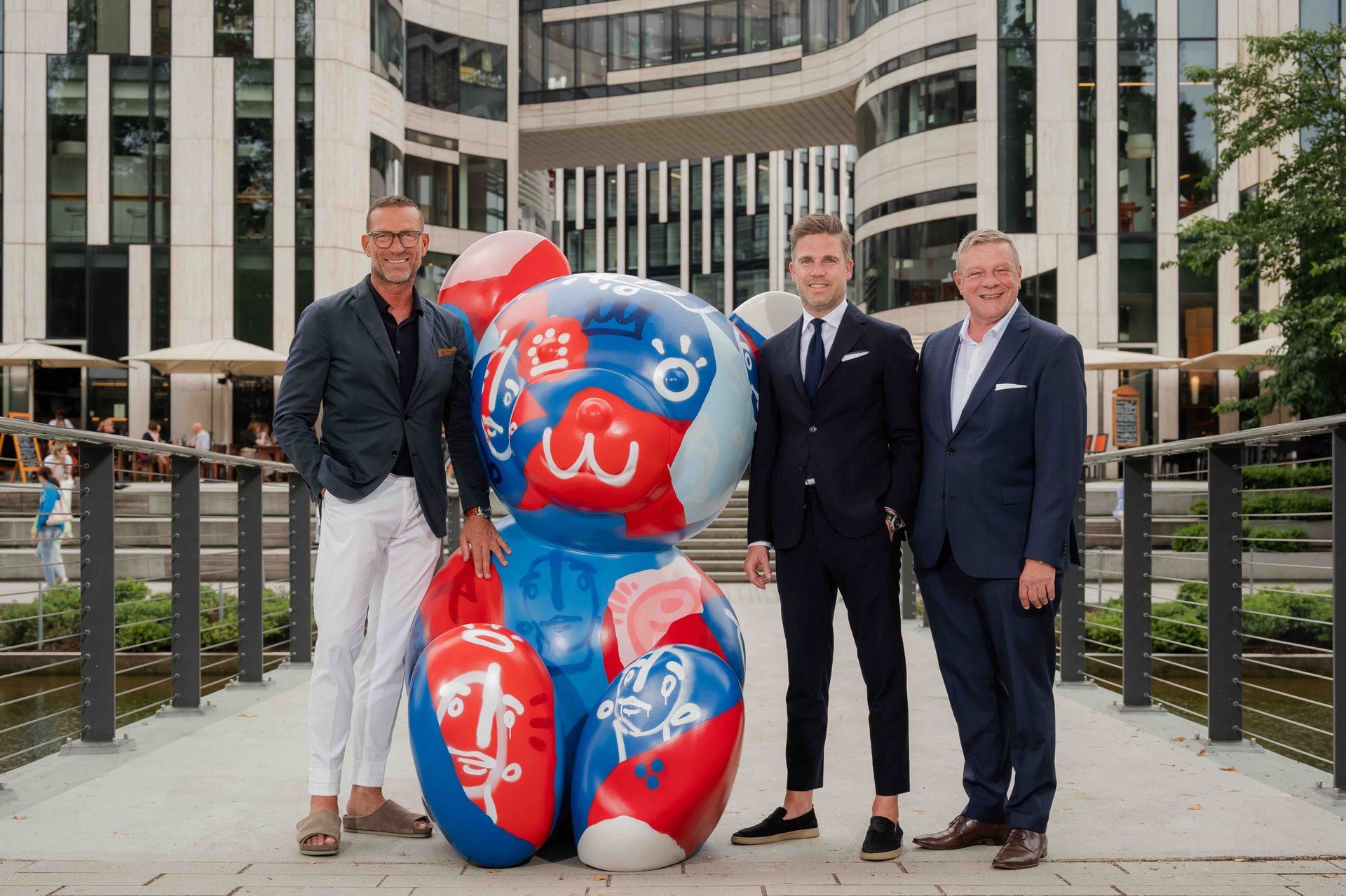 From todays press conference: From left: Andreas Rebbelmund (CEO Breuninger Düsseldorf), Breuni Bear by artist Steffen Mumm, David Zimmermann (CEO Breuninger Düsseldorf) and Andreas Stolz (Head of Asset Management NRW, Art-Invest Real Estate)