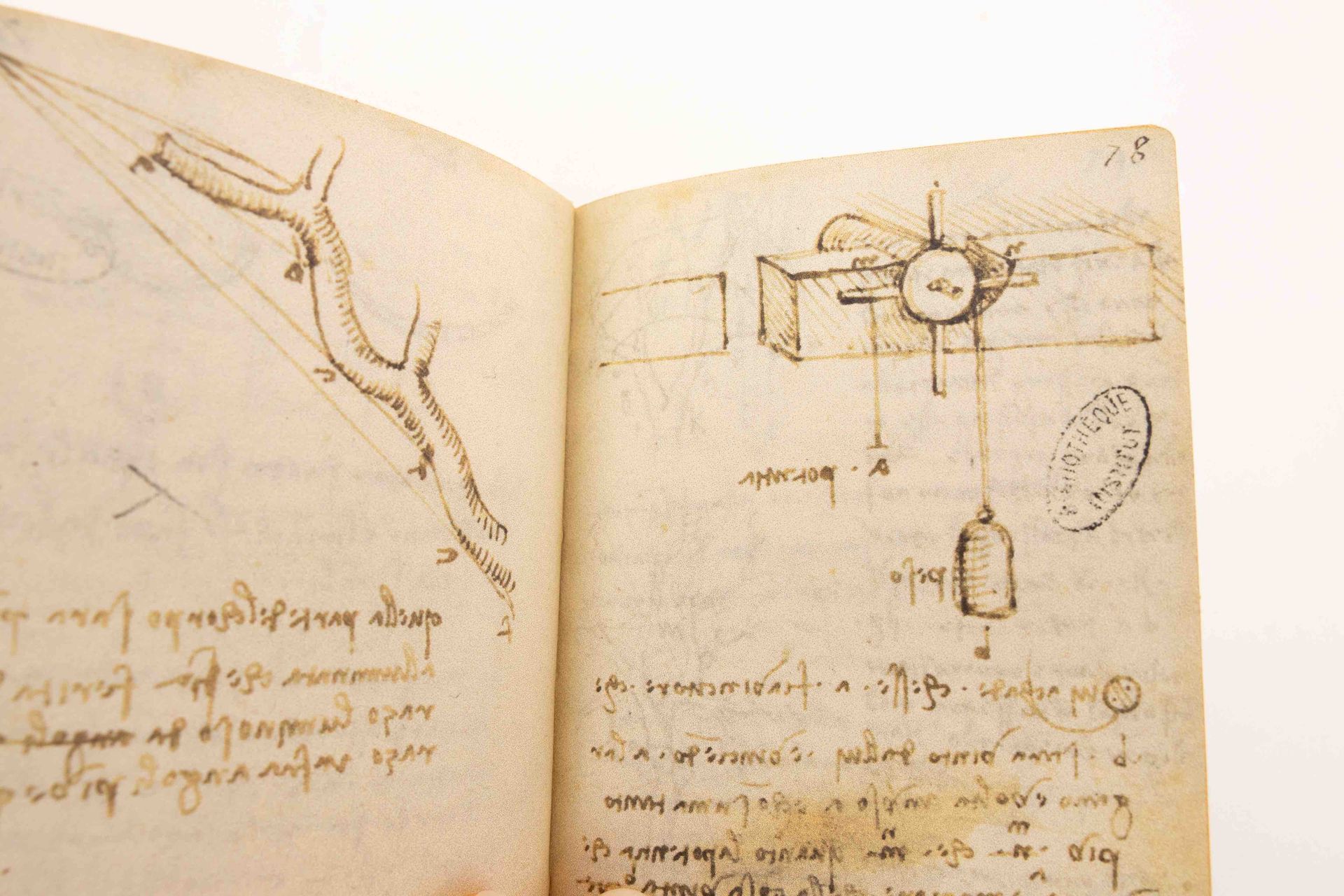 The first four volumes (Manuscript A, E and M, and Suppl. A) were produced as a facsimile edition containing notes on subjects including the art of drawing, the properties of water, weight and gravity, and geometry and botany. Manuscript A was originally more extensive, but pages 81 to 114 of the manuscript (as well as pages 91 to 100 of Manuscript B) were cut out, stolen and sold in the 1840s. It was not until 50 years later that they were returned to the Institut de France and bound separately from the original manuscripts. As a result, there is a supplement volume (Suppl. A and Suppl. B) of both Manuscript A and Manuscript B. Each facsimile edition is accompanied by a scholarly commentary volume explaining the manuscript and the miniatures. The reproductions are limited to 990 copies each.