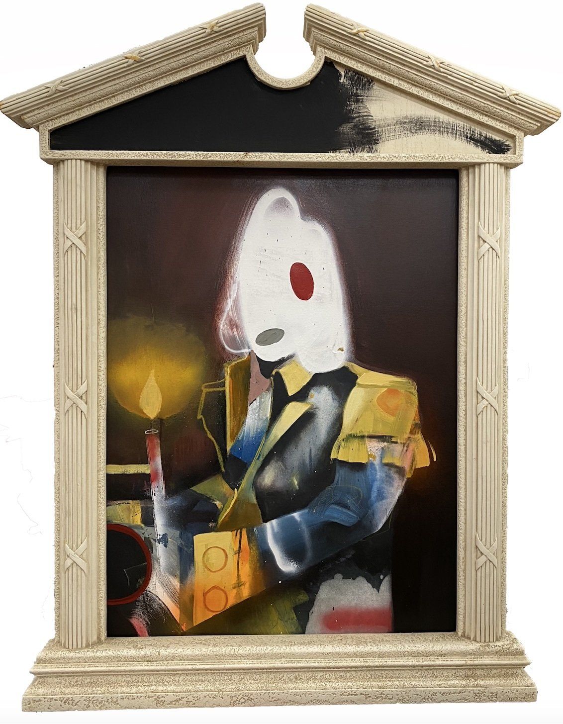 In Confined Without a Soul, a soldier with no hands and two prosthetic legs sits in a raucous, airless room. In the place of what should be a head is a strange, duck-billed creature; the senselessness of combat rendered darkly comedic. Similarly satirical, the protagonist of When the House is on Fire is a ghost-like soldier, dressed in a uniform from the deep past, holding a candle. The moral of the story: do not use what will kill you to illuminate your way.
