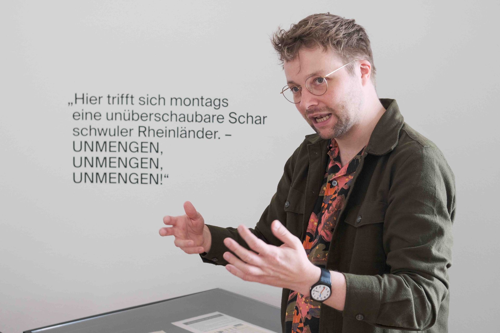 In the first exhibition room, visitors learn more about the Rhine River funfair as a point of reference for the gay scene and art. Club magazines and community magazines on funfair outings focus on the early phase of Pink Monday in the Schwarzwald-Christel, a legendary marquee on the funfair grounds.