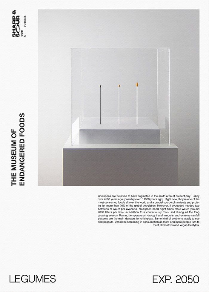 The Museum of Endangered Foods is a speculative project that explores the impact of climate change on our food and eating habits. It aims to make visitors think about how diets and lifestyles are threatened by ecological changes. Causes range from rising temperatures to freshwater scarcity, extreme and erratic weather patterns, habitat loss and deforestation, pollution and increased vulnerability to epidemics, predators and disease.
